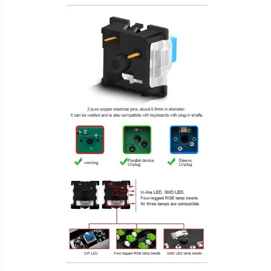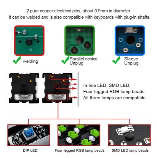 Redragon SMD RGB MX Switch 1PC WhiteBase 3Pin Clicky Linear Touch Silent Backlit Mechanical Keyboard