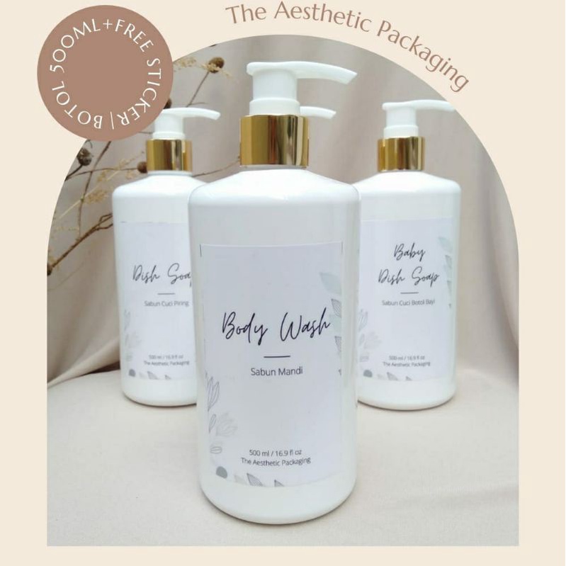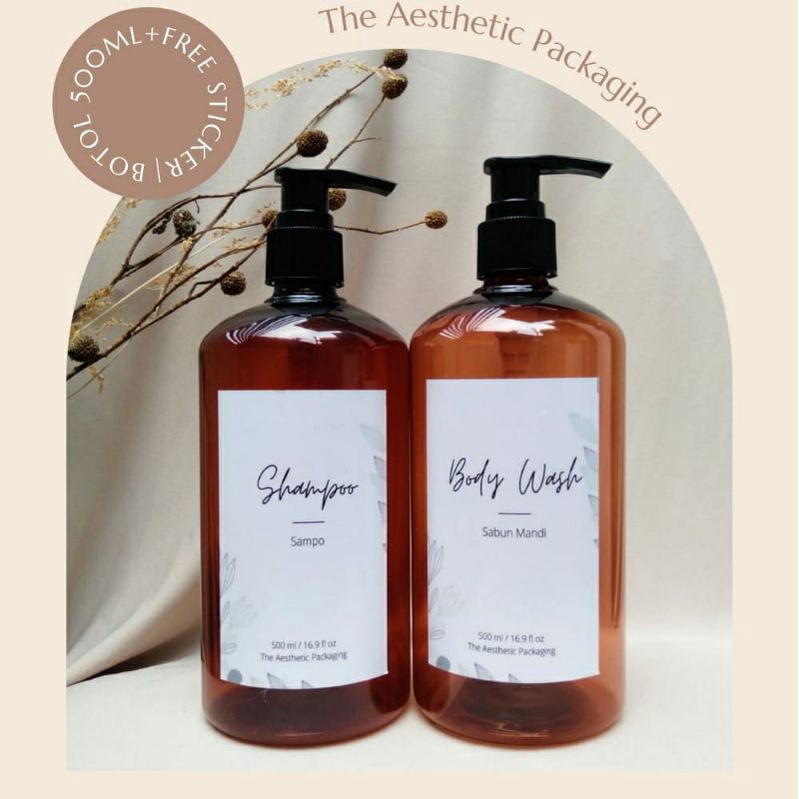 Refill Bottle+Label Sticker Waterproof 500ml Premium Aesthetic Luxury Refill Container minimalist home decor refillable pump 500ml hotel dark Brown gold