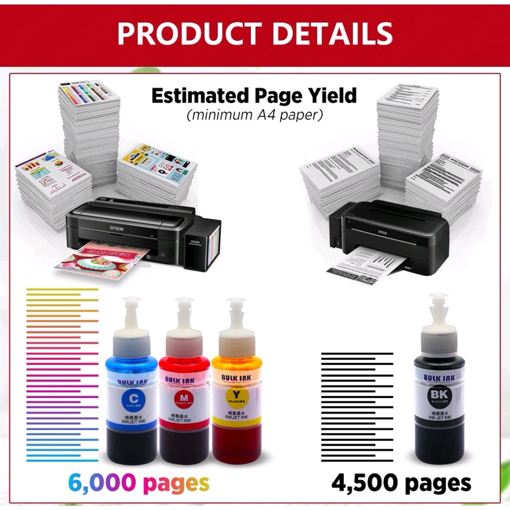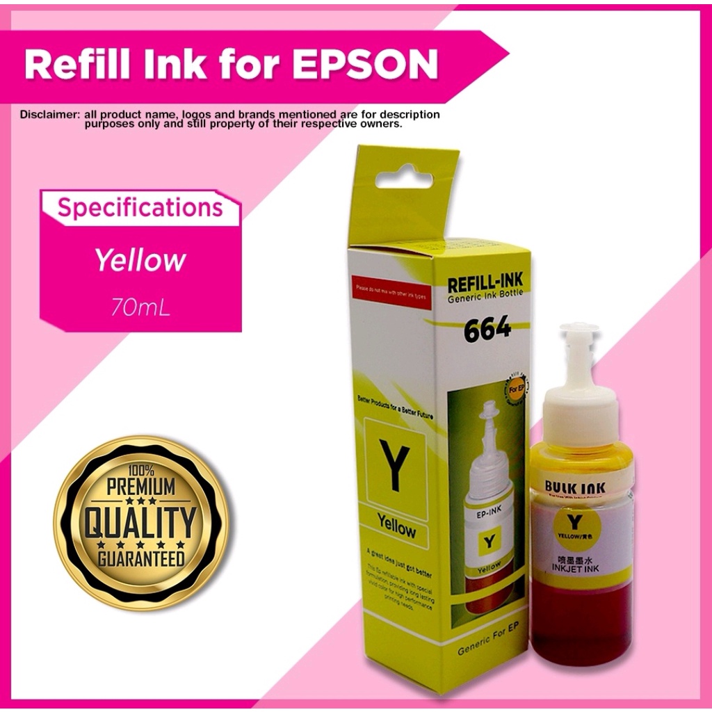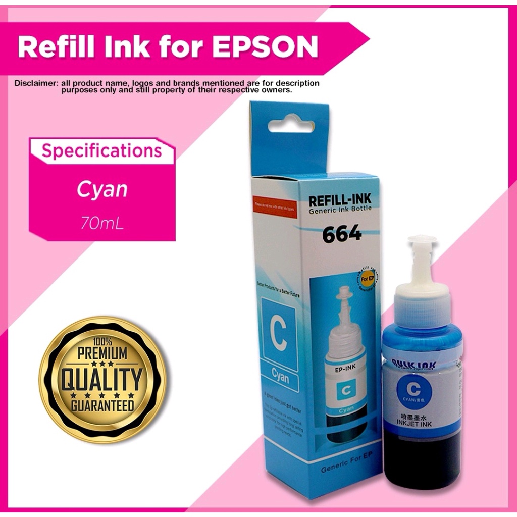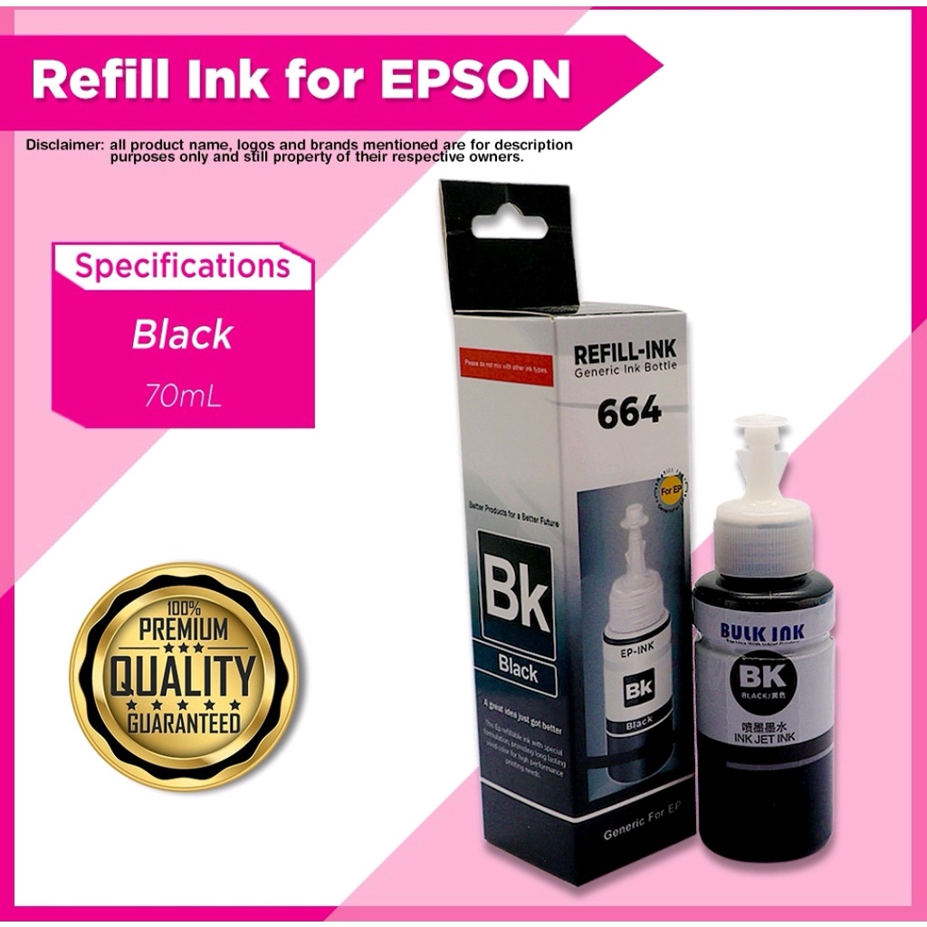 Refill Epson 664 Ink for Printer L120 L360 L310 L130 L210 L220 L355 L358 70ML Dye Ink