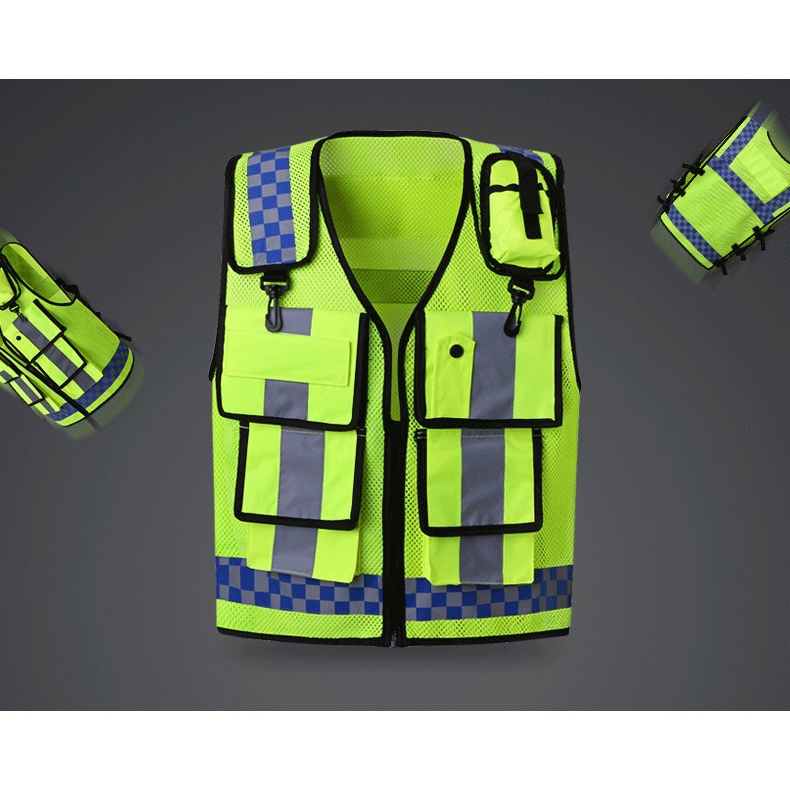 Reflective Vest High Visibility Warning Safety Vest Fluorescent Clothing Multi Pockets Security Guard Traffic Reflection Clothes