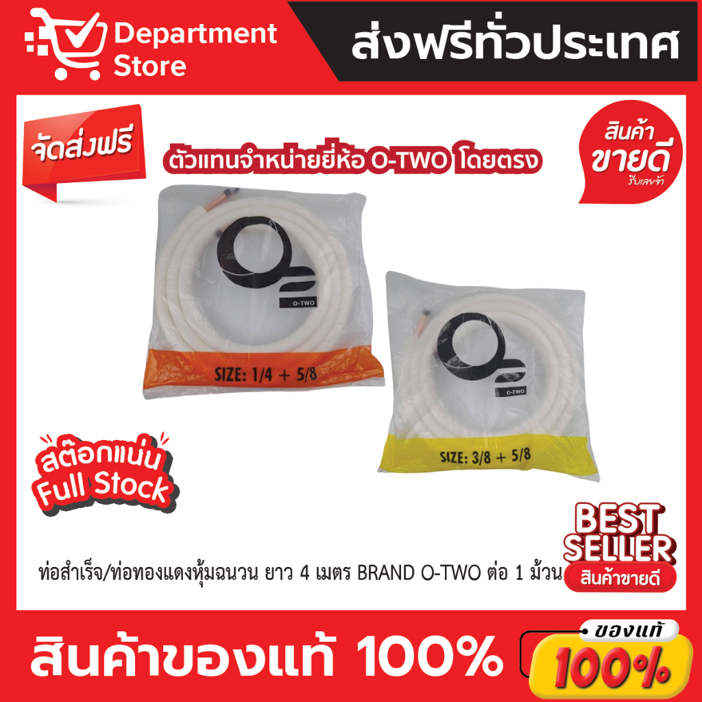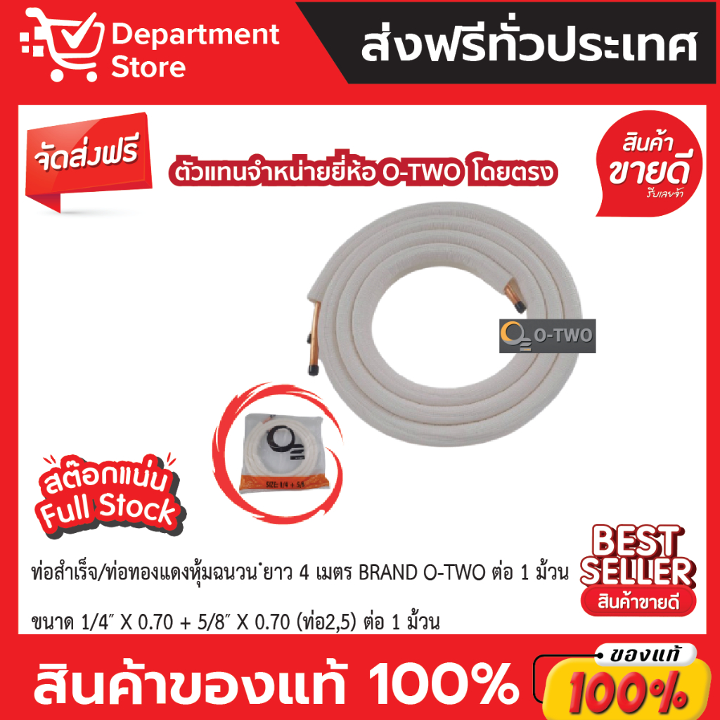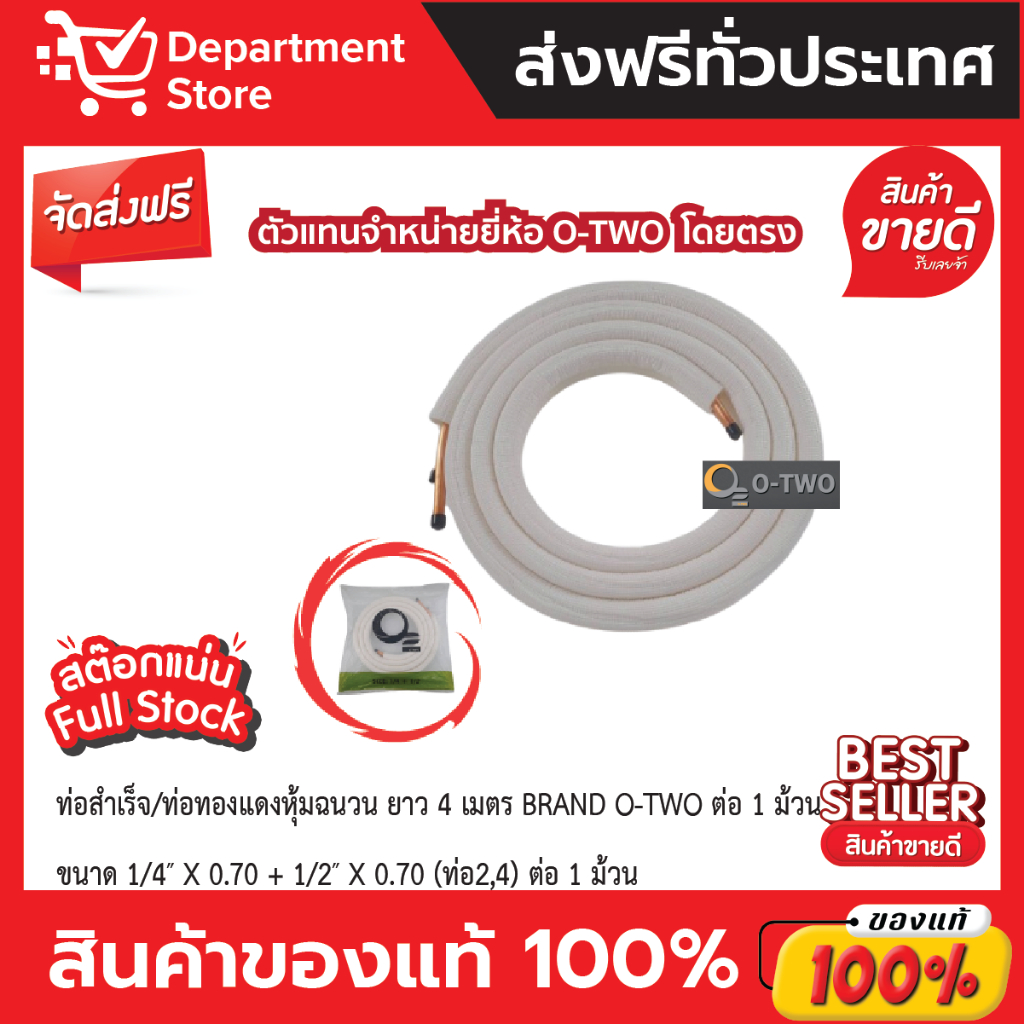Refrigerant Pipe Finished Liquid Copper With Insulation Thickness 0.7 Length 4 Meters BRAND O-TWO Per 1 Roll.
