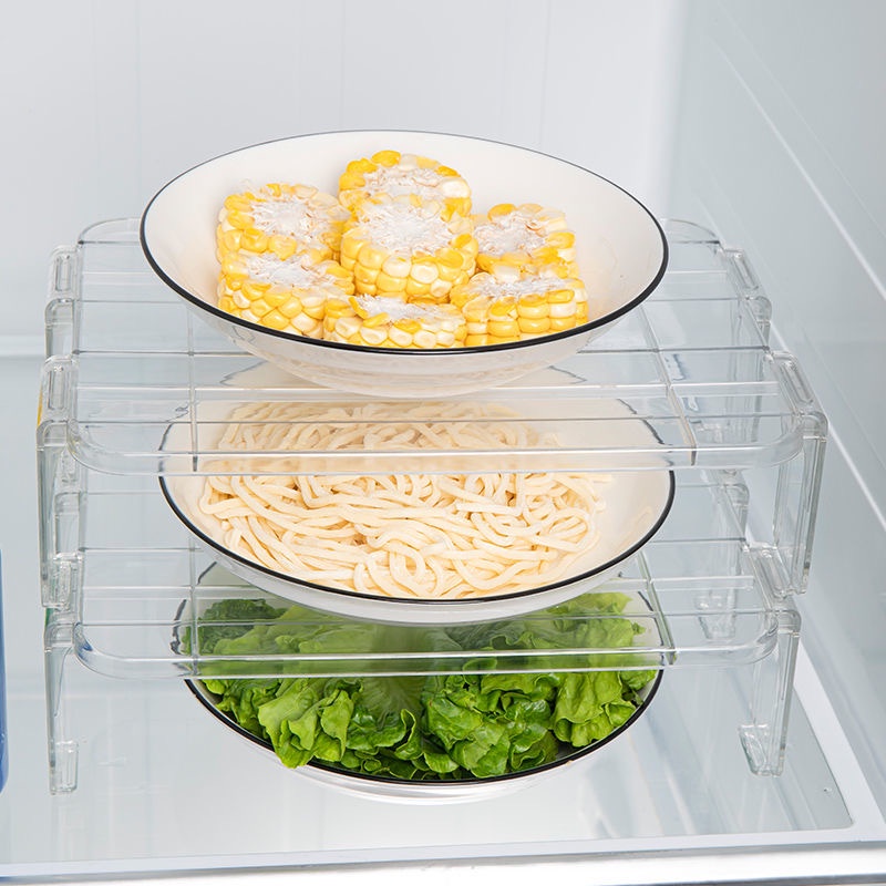 Refrigerator Organizer Kitchen Organizer Instant Movable Dish Shelf Stackable Clear