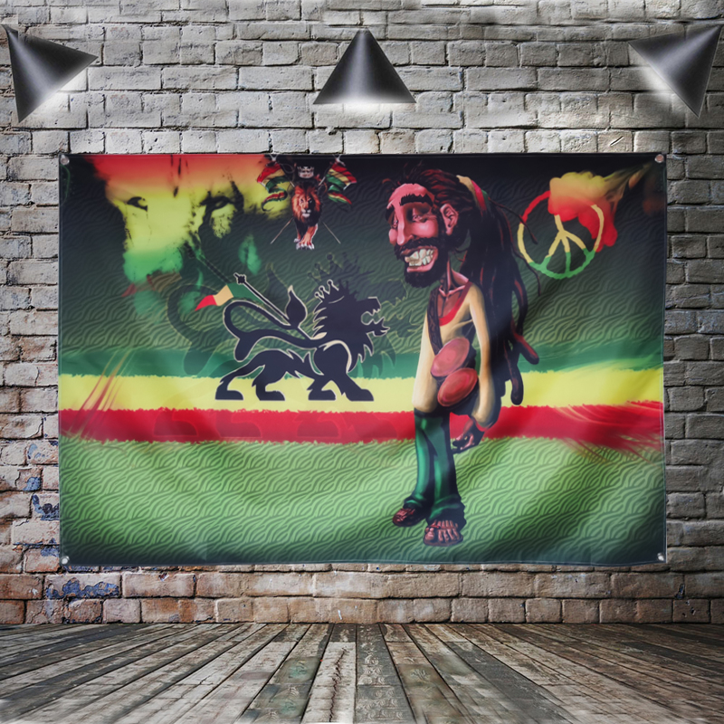 Reggae Lion Flag Banner Jamaica Rasta Music Rock Band Home Decoration Hanging Flag 4 Gromments In Corners 3FTX5FT 90CMX150CM
