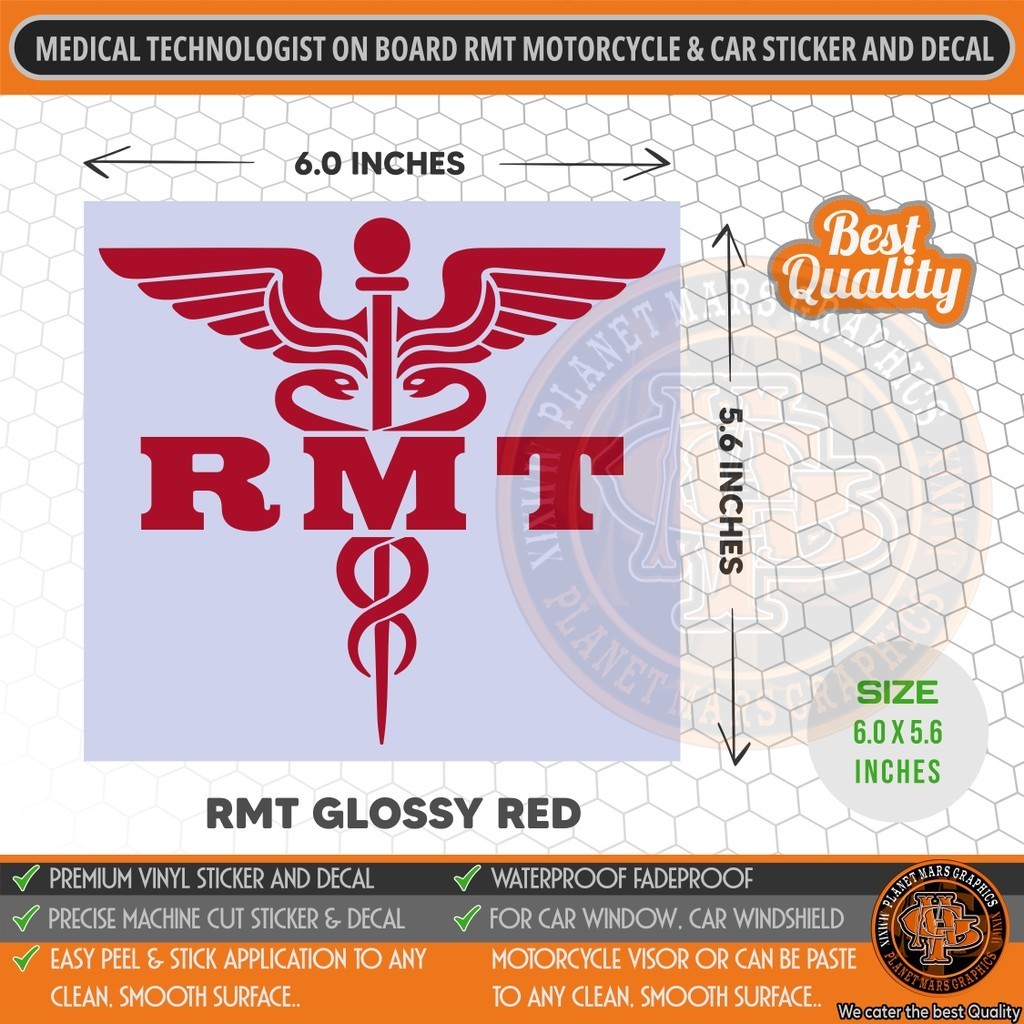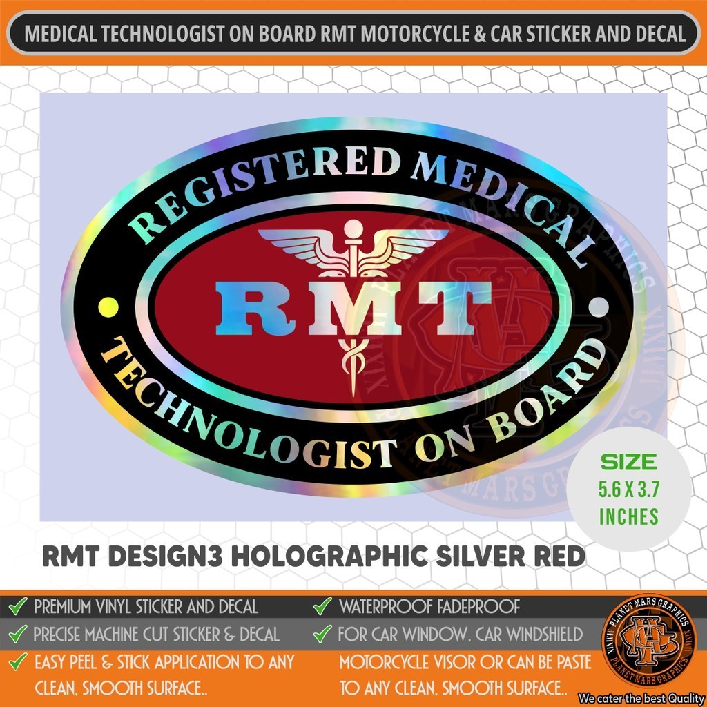 Registered Medical Technologist On Board RMT Car Motorcycle Waterproof Sticker