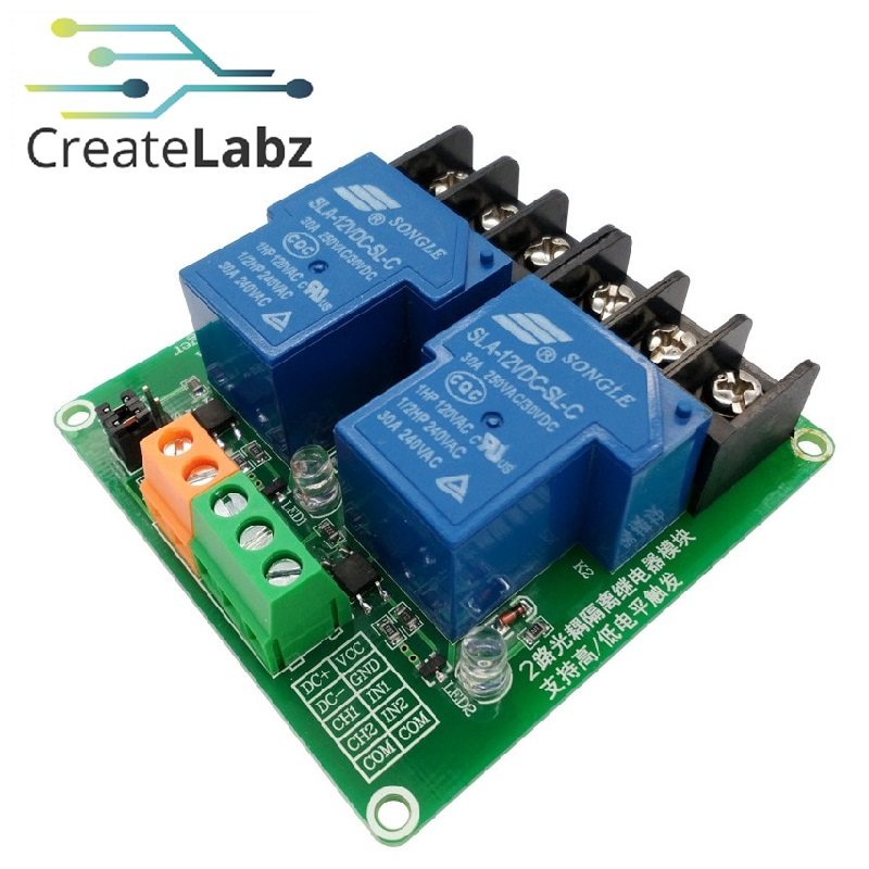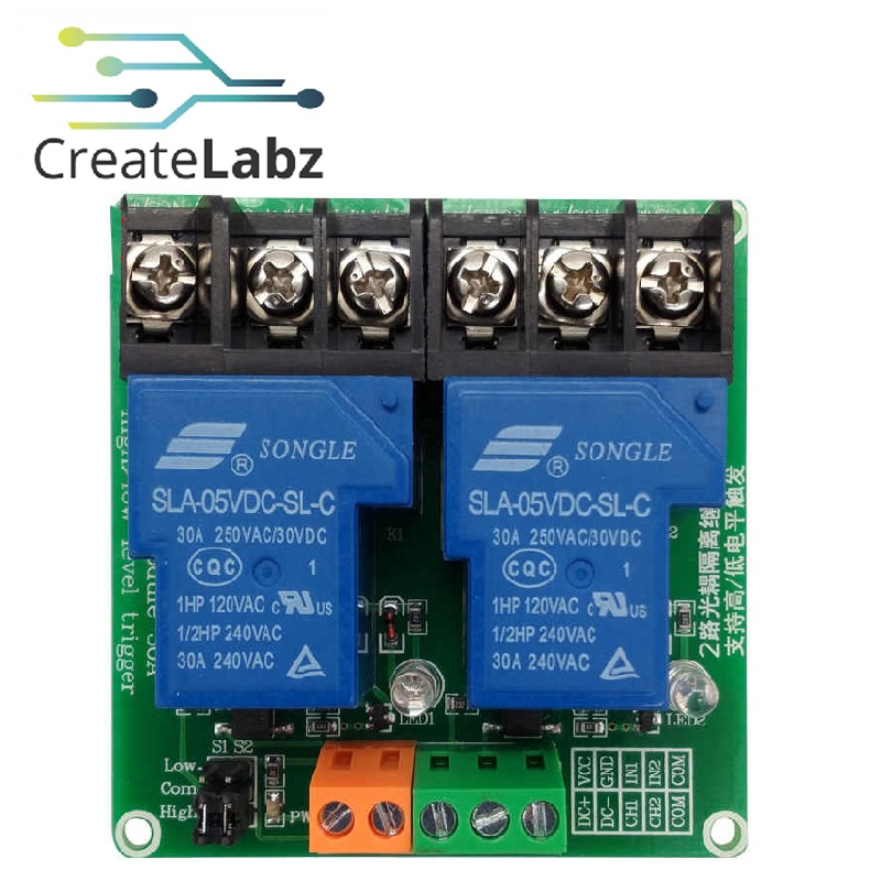 Relay Module 2-channel, 5V/30A High/Low Level Trigger with Optocoupler Isolation