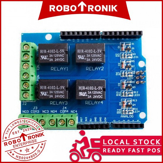 Relay Shield 4 Channel, Compatible Arduino UNO R3 MEGA Leonardo
