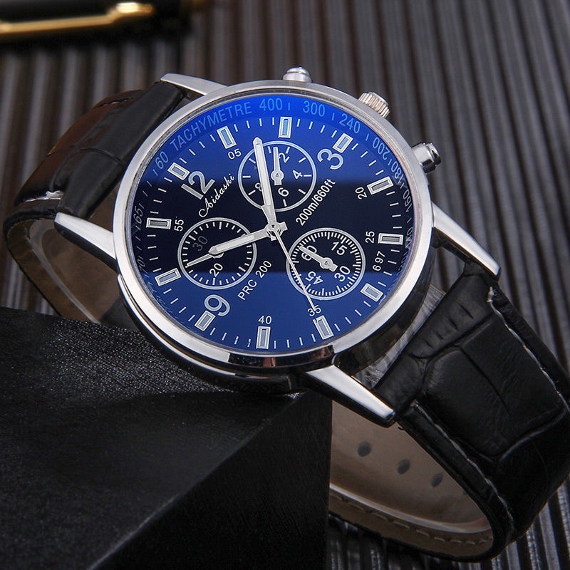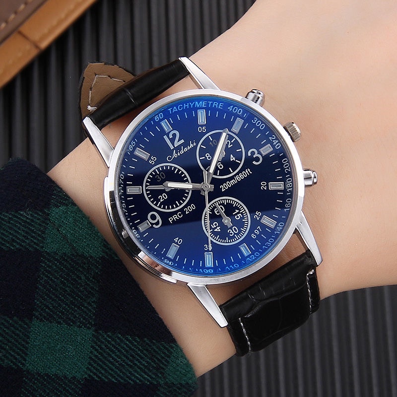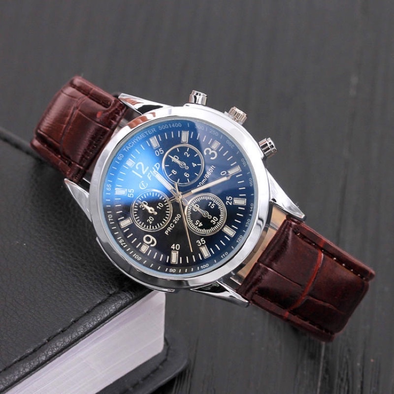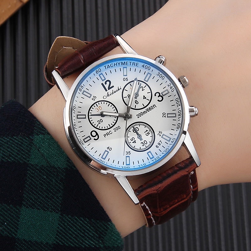 Relo Casual Simple Design Men's Round Dial Leather Strap Quartz Watch