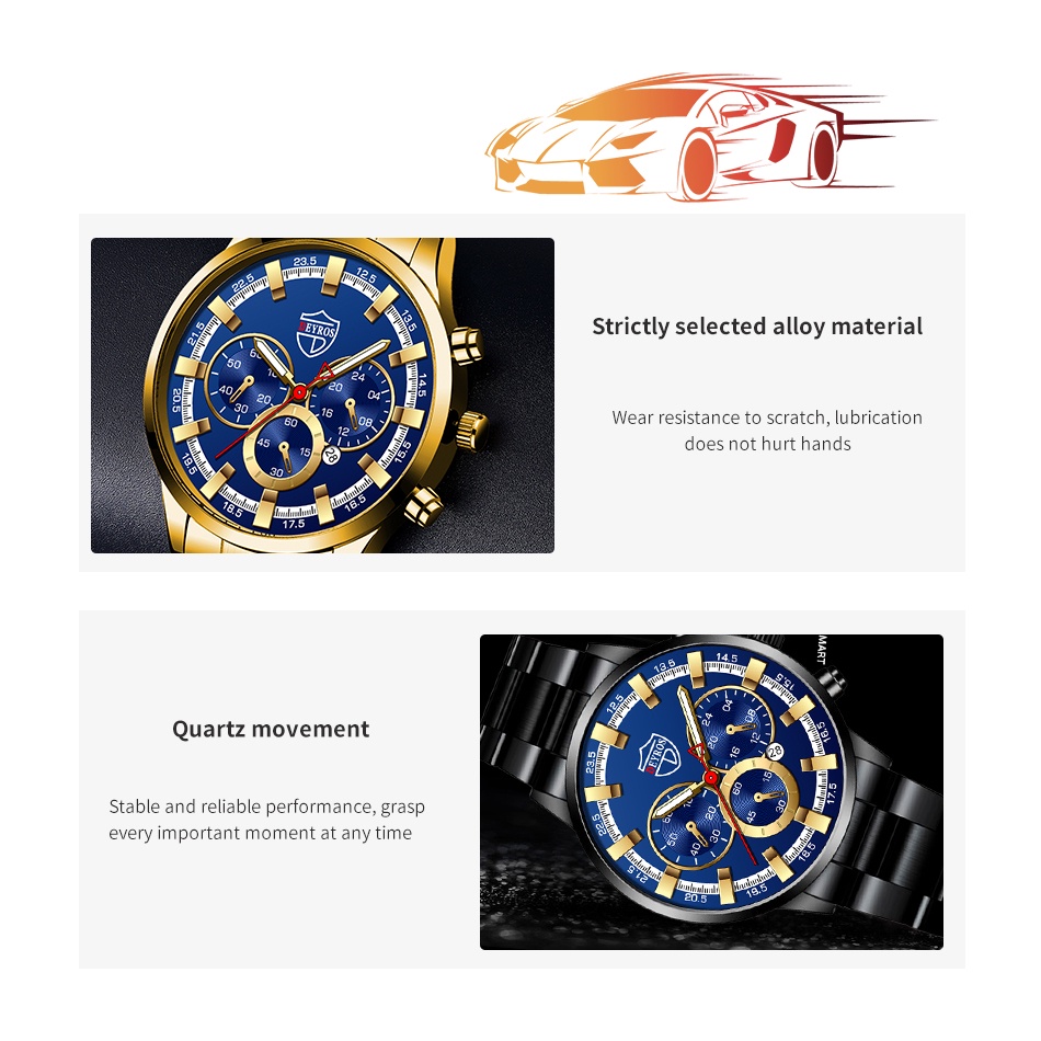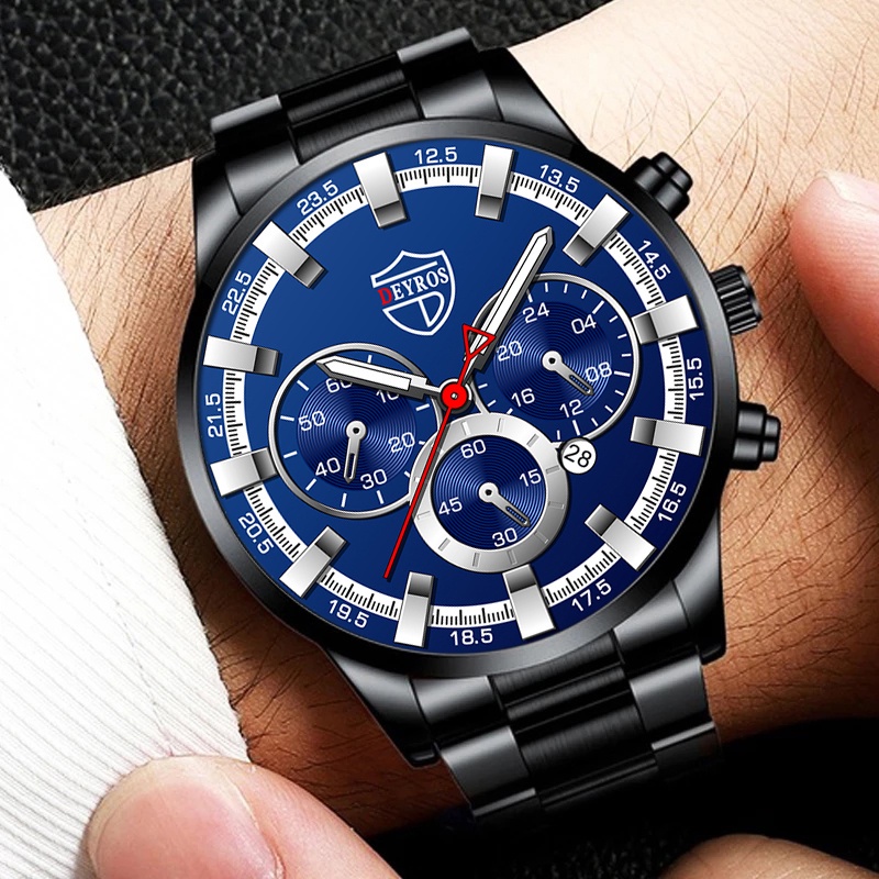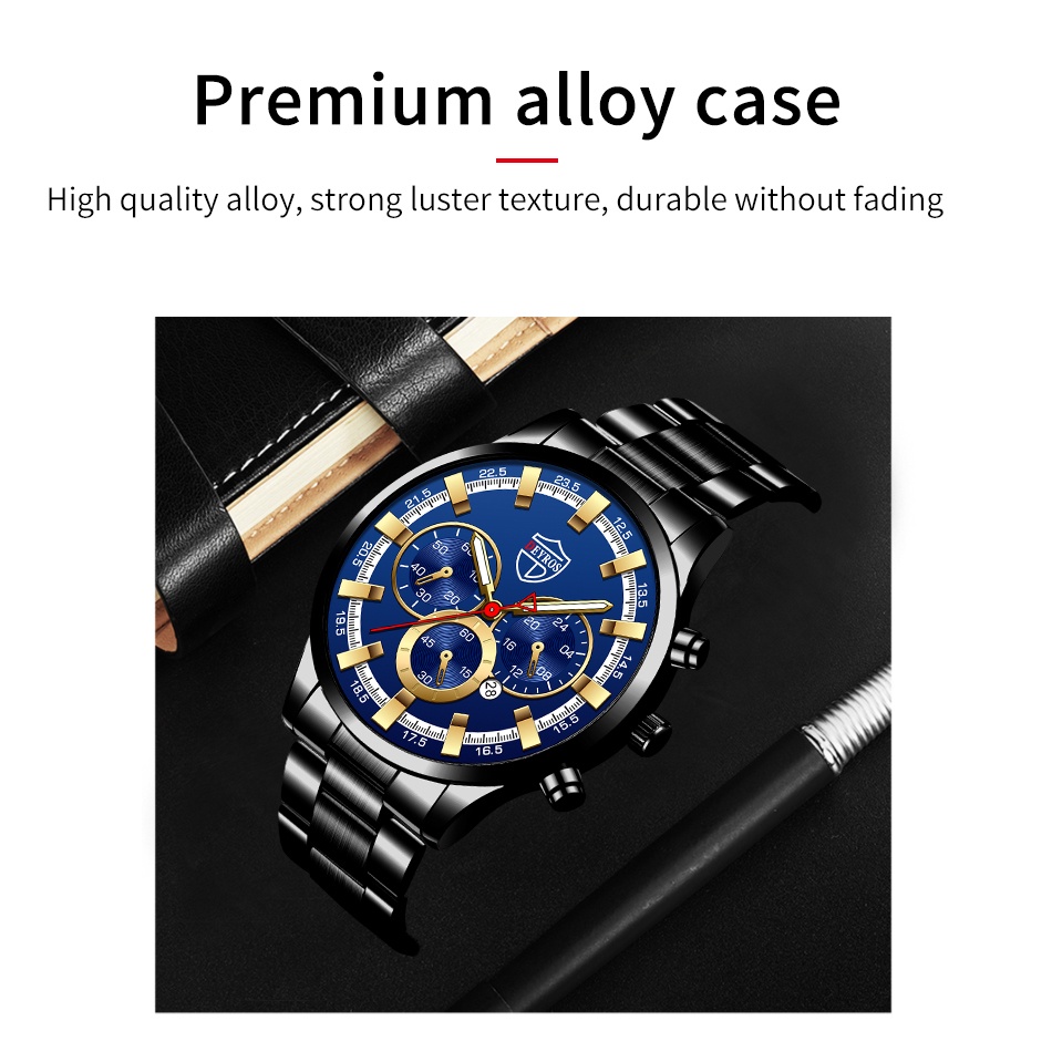 Relo Watch for Men Original Waterproof Stainless Steel Quartz Analog Wacthes Mens Luxury Gold Business Calendar Fashion Wristwatch Men Watch
