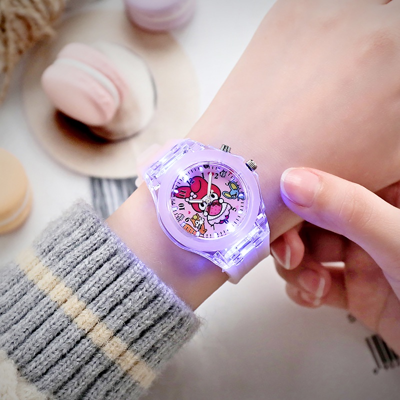 Relo for Kids Sanrio Cartoon Kids Watch Luminous LED Watch Hello Kitty Cinnomoroll Pompom Purin My Melody Kuromi Watch for Kids Girls Birthday Present