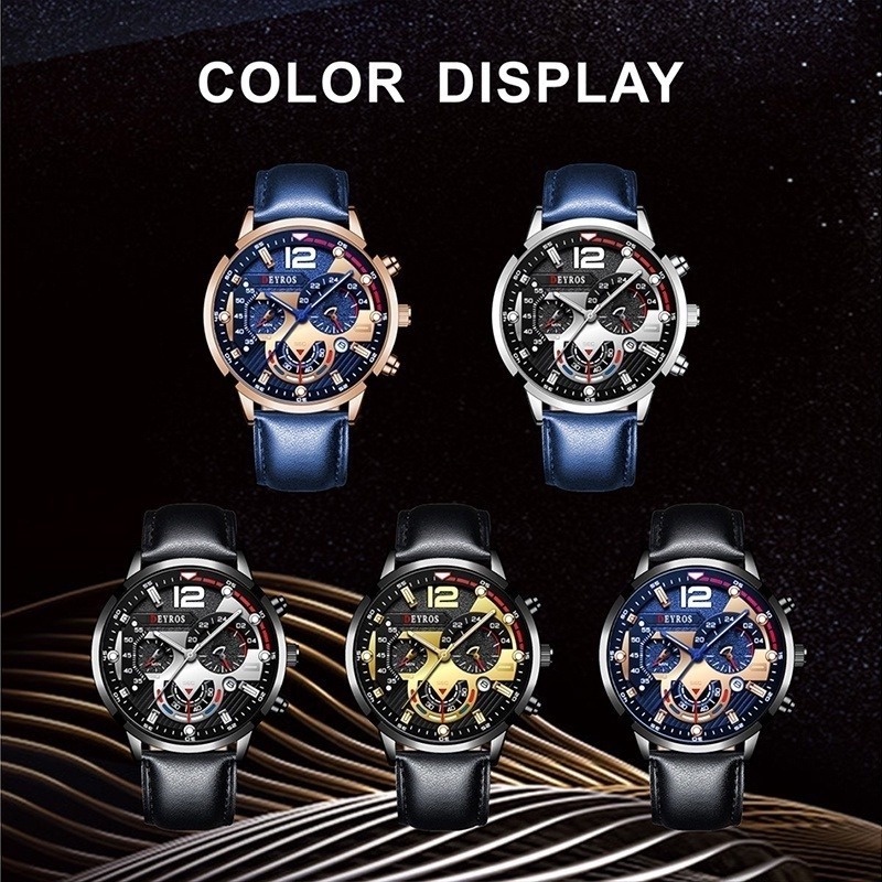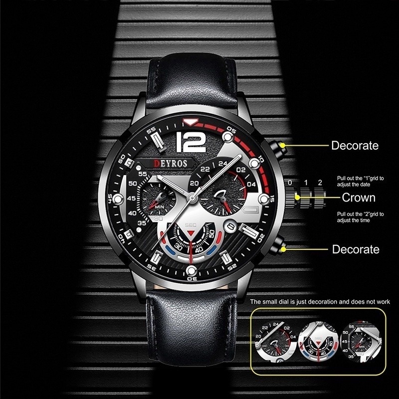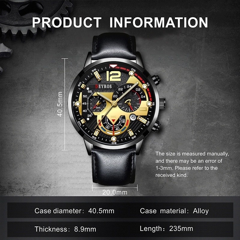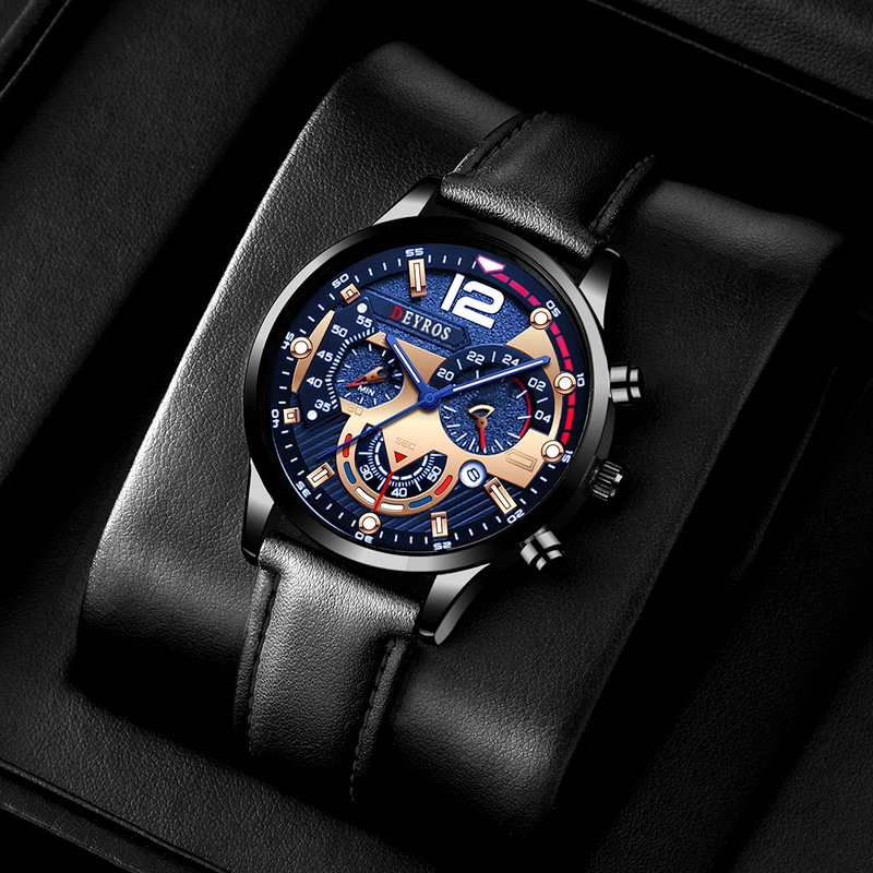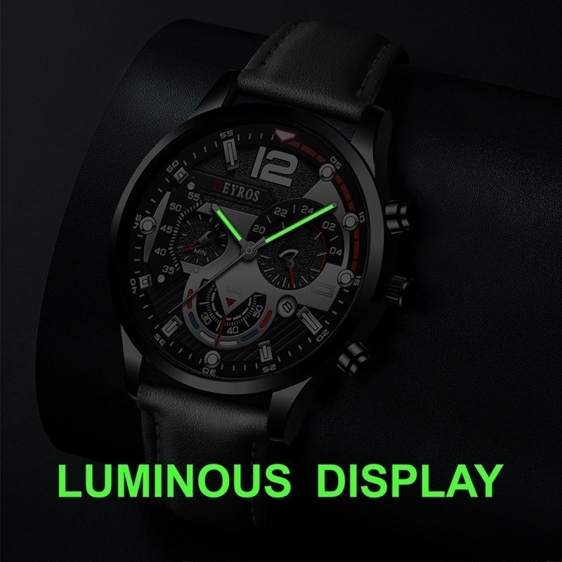 Relo for Man Watch for Men Original Luminous Leather Belt Black Watch Fashion Stainless Steel Men Watches Calendar Quartz Wristwatches Business Casual Luxury Gold Watch Male Clock