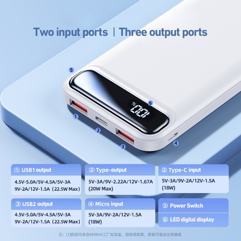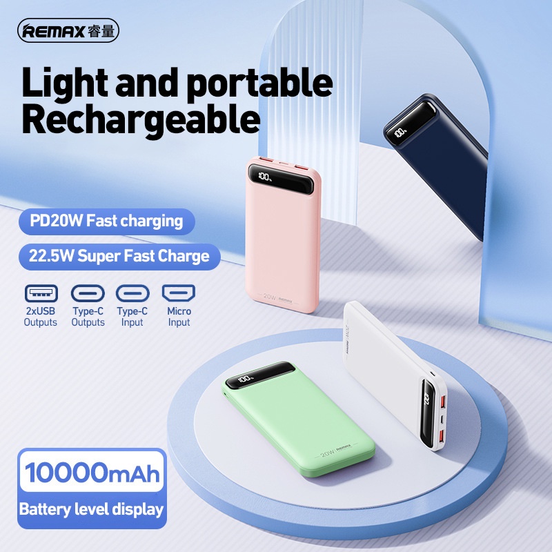 Remax Powerbank 10000mAh Power Bank 22.5W Super Fast Charge 20WPD 2 Inputs 3 Outputs