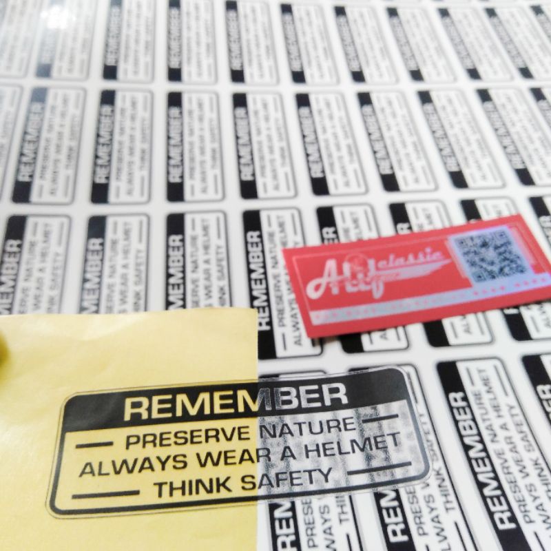 Remember sticker, Remember detail sticker, BLACK/WHITE Sticker Decal Mark Caution REMEMBER Gastank Fueltank HONDA CB100 CB125 CB175 XL125 XL125S S90 S90Z S110, ETC