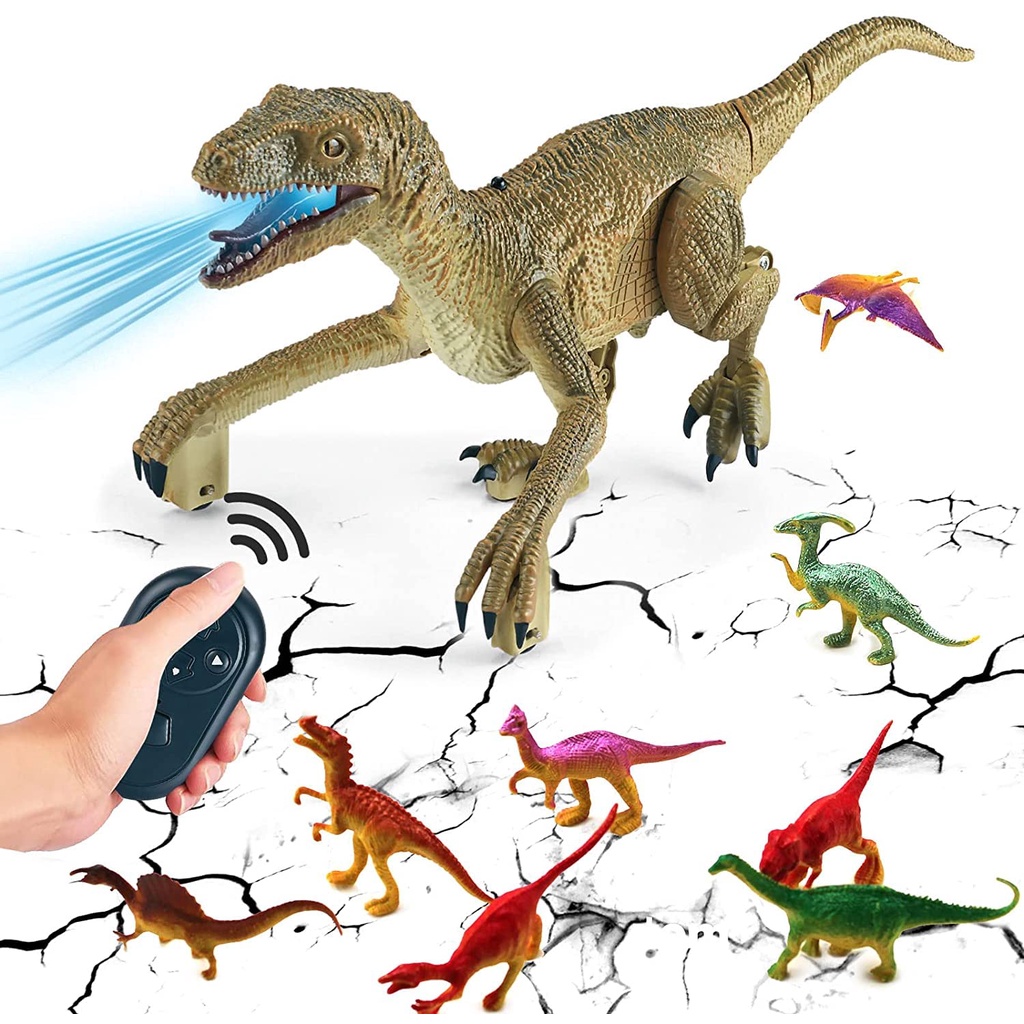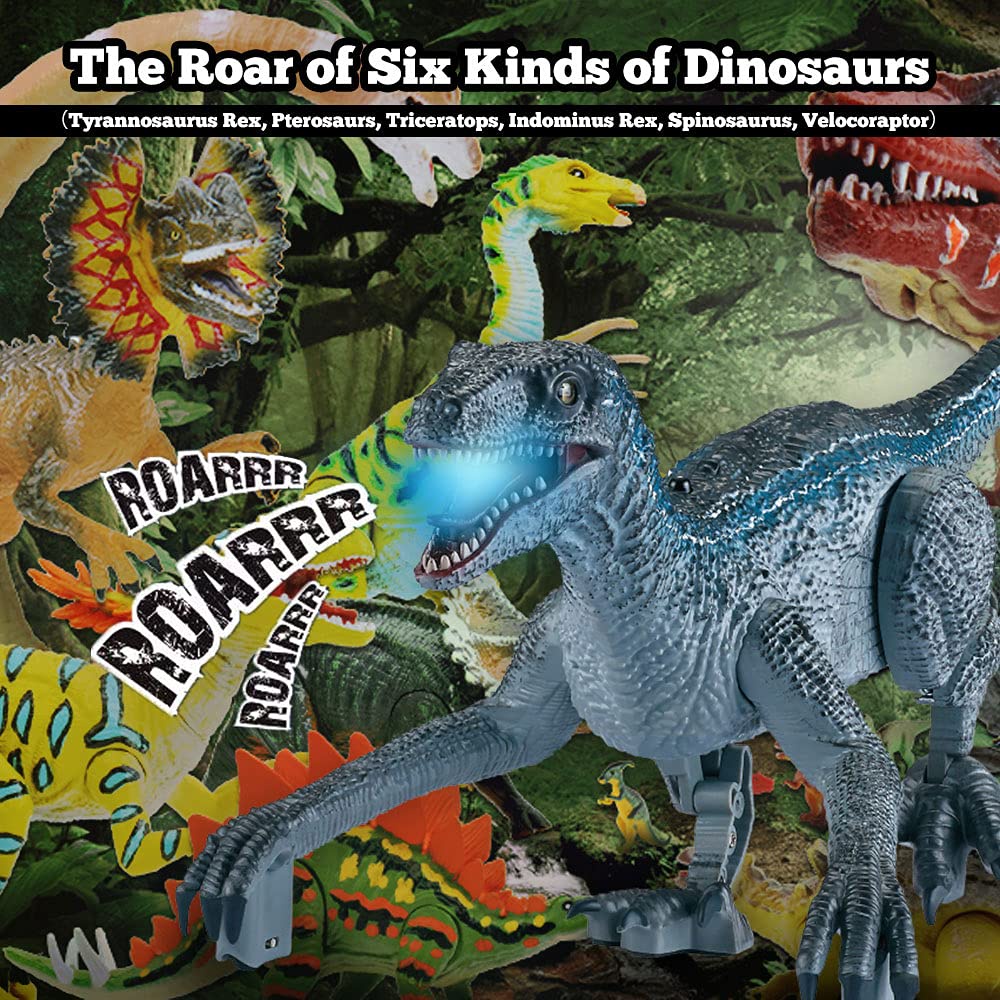 Remote Control Dinosaur Toys for Kids, Electronic Realistic Velociraptor RC Dinosaur Walking Pets Robot Dino with Lights and Roaring Sounds, Christmas Gift