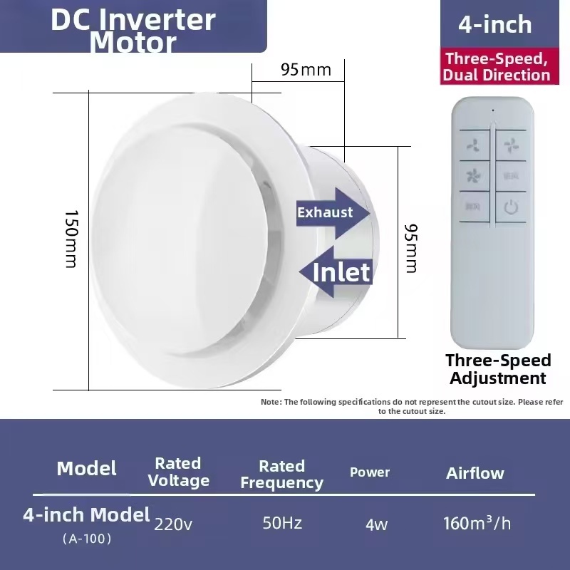 Remote Control Exhaust Fan Domestic Toilet Exhaust Fan Wall-Mounted Kitchen Bathroom Ventilator Stro
