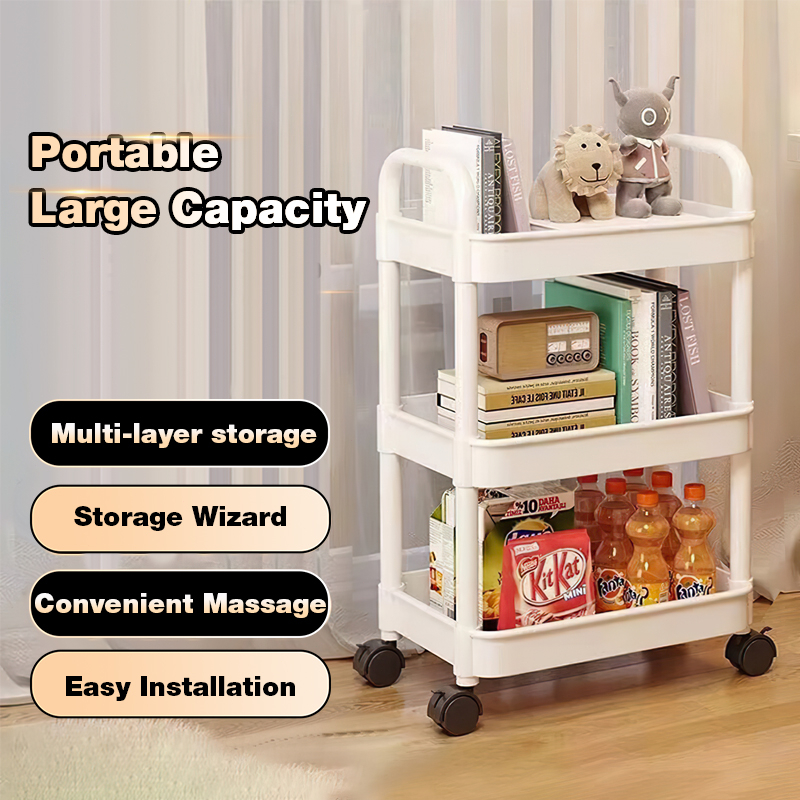 Removable Trolley Cart Organizer 3/4/5-Tier Plastic Utility Cart Moving Rack Bathroom Organizer Rack Kitchen Storage Baby Things Toy Organizer with Handle Wheels