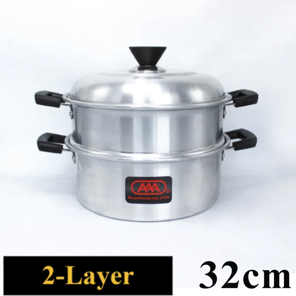 ALUMINUM STEAMER – 2/3-Layer Cooking Pot with Lid (26cm/36cm) for Steaming & Kitchen Use holio shop