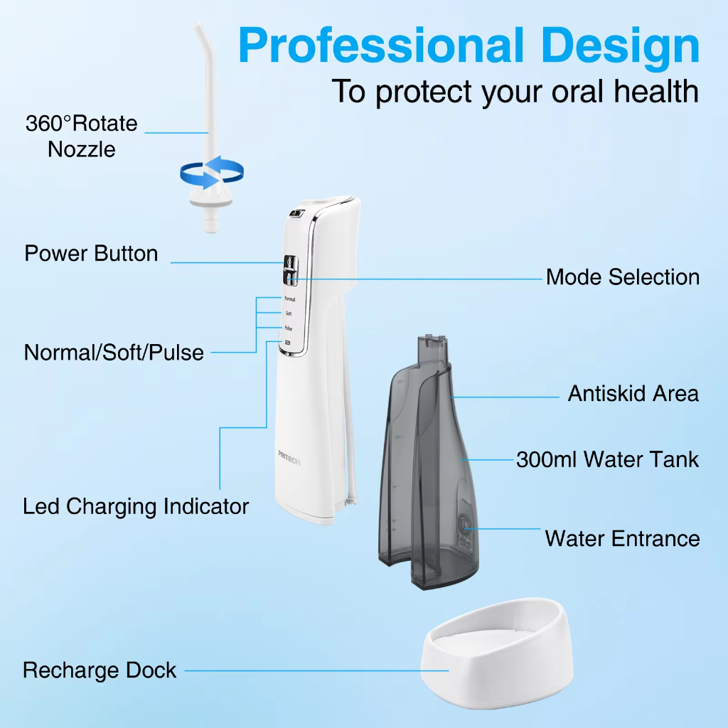 Oral Irrigator 3 Modes Waterproof 300ML Water Flosser Tank For Teeth Whitening,Portable Dental Jet Usb Cleaning tools 4 Nozzles