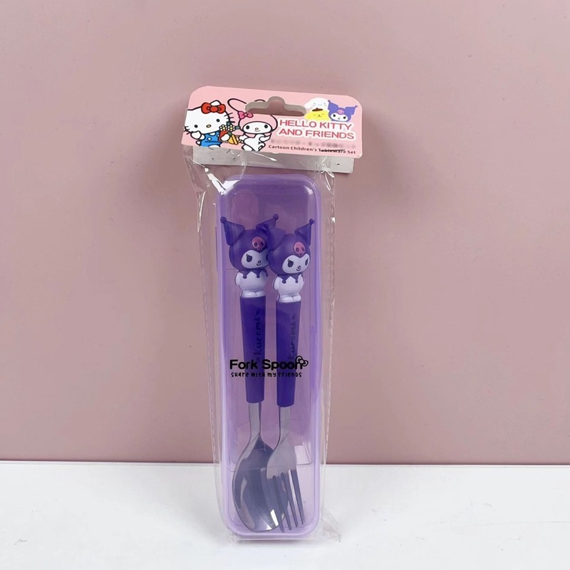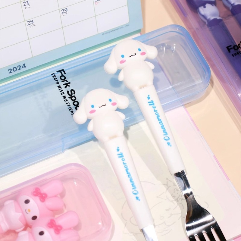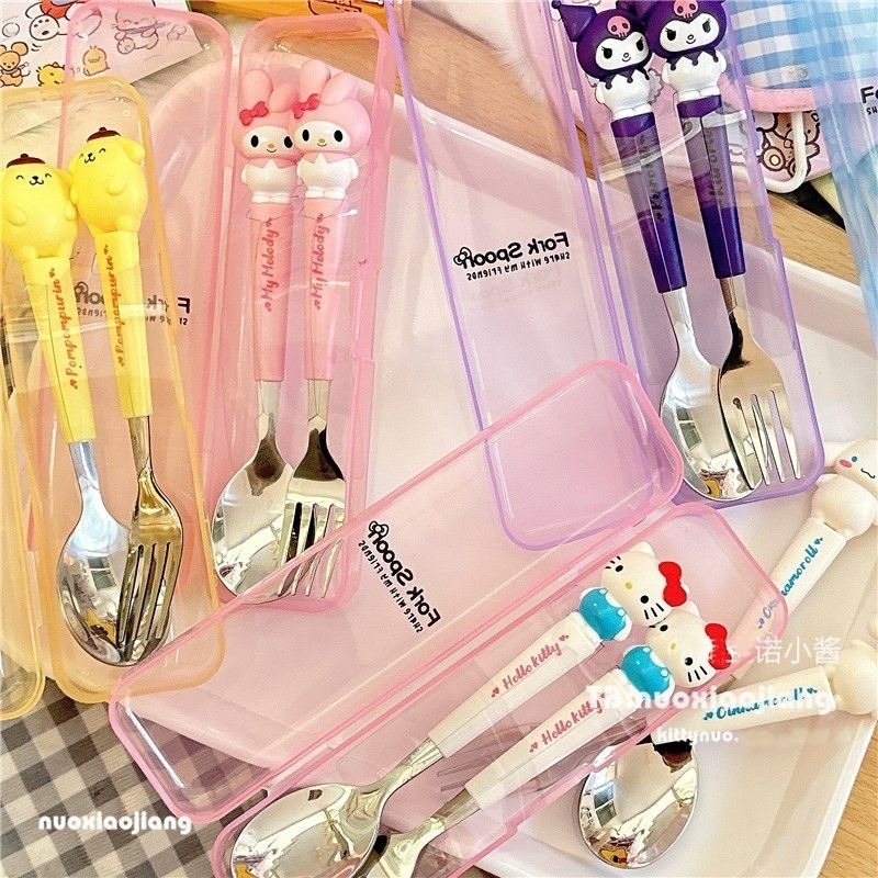 Student Portable Fork Spoon Cartoon Tableware 2-piece Set Sanrio Stainless Steel Tableware