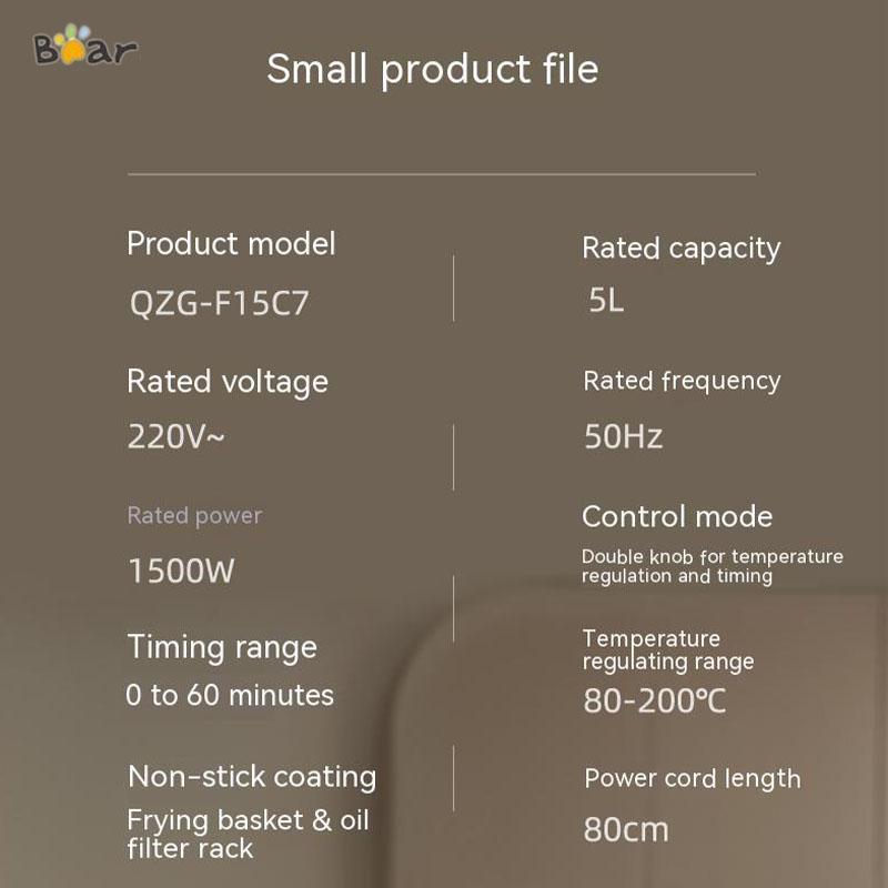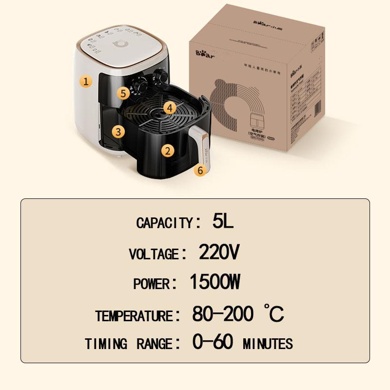 Bear 5L Air Fryer (QZG-F15C7-ECOHEALTH): Healthy Cooking, Adjustable Temp & Timer