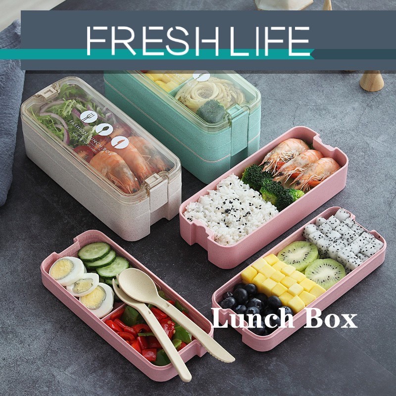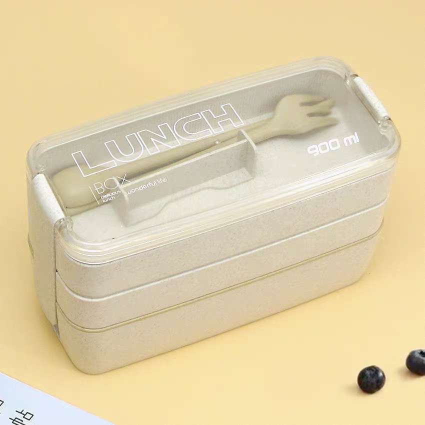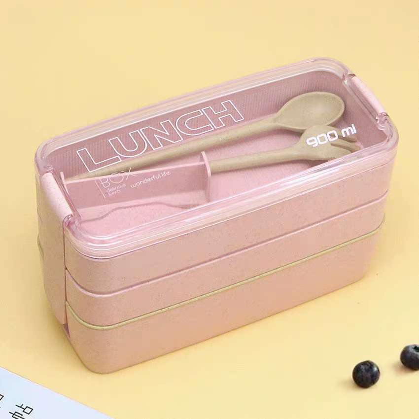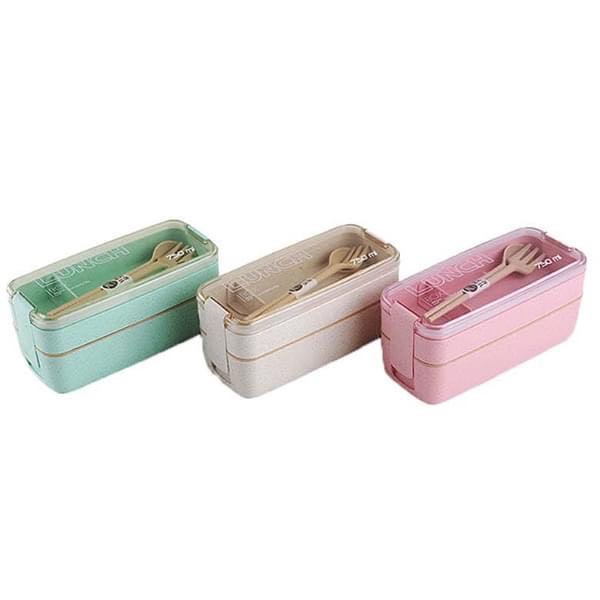 2 Layer Japanese Wheat Straw Lunch Box 750ML Portable Picnic Food Fruit Container Storage Box