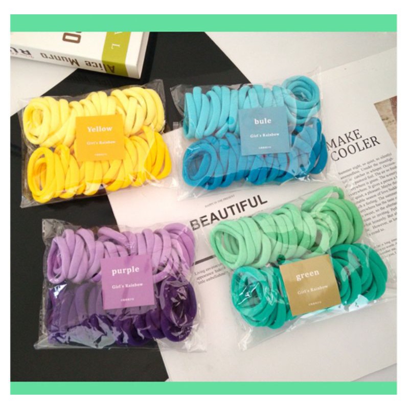 48pcs hair tie gradient color high elastic purple pink yellow blue black(1pack/48~50pcs)