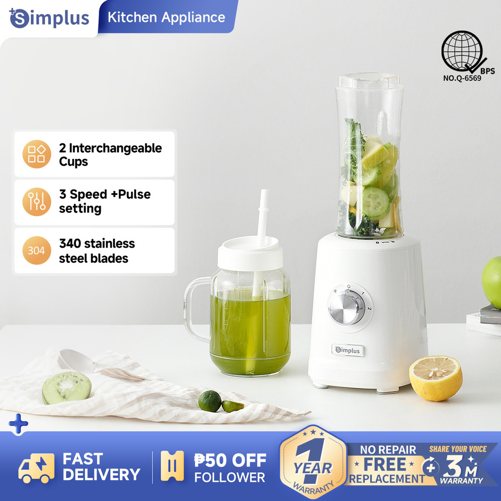 Simplus Blender Multi-functional Food Processor 3 Adjustable Modes 2 Interchangeable Cups