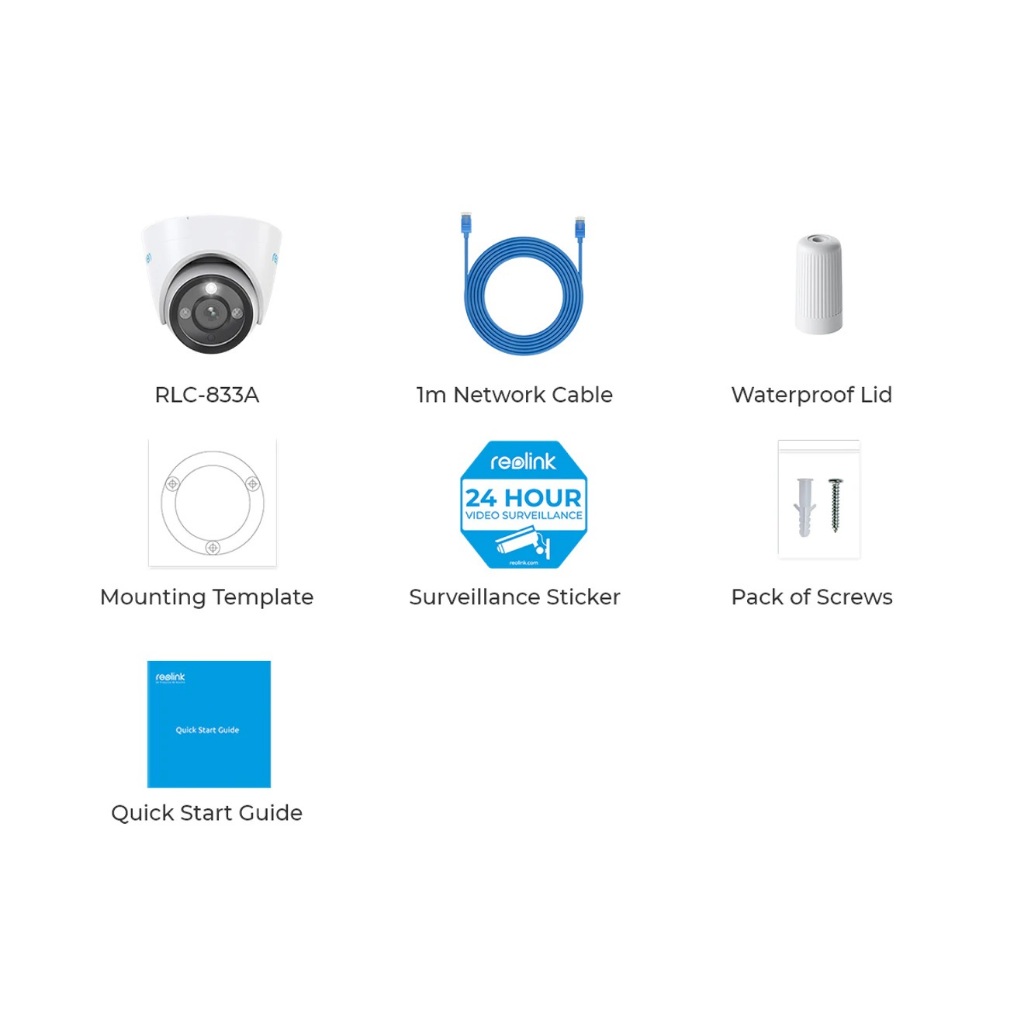 Reolink 4K 8MP Outdoor Turret IP POE Camera 3X Optical Zoom with Spotlight RLC-833A