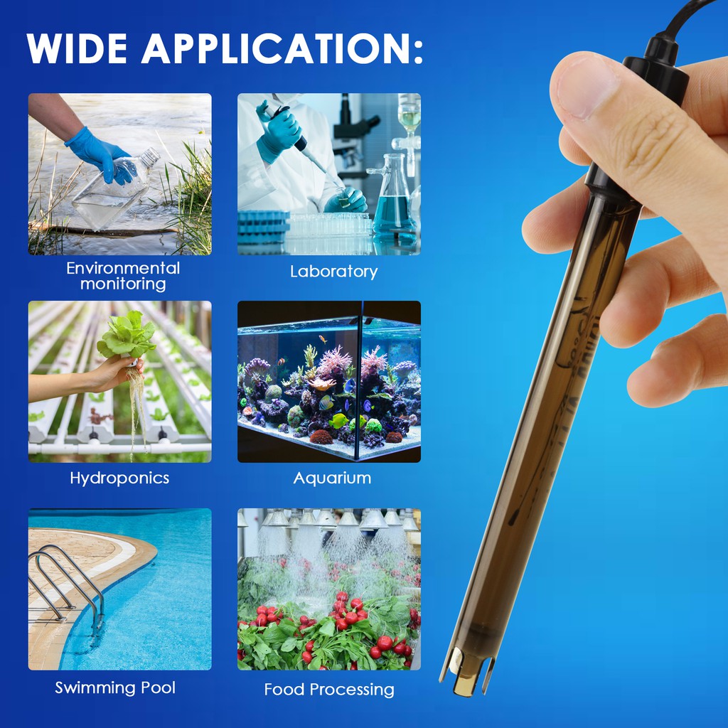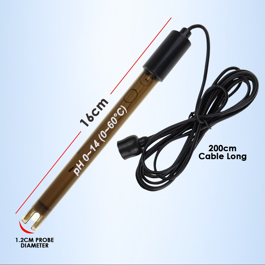 Replacement pH Electrode with Calibration Powder, 0-14 pH Highly Accurate Probe with BNC Connector & 200cm Cable for Continuous Liquid Measurement