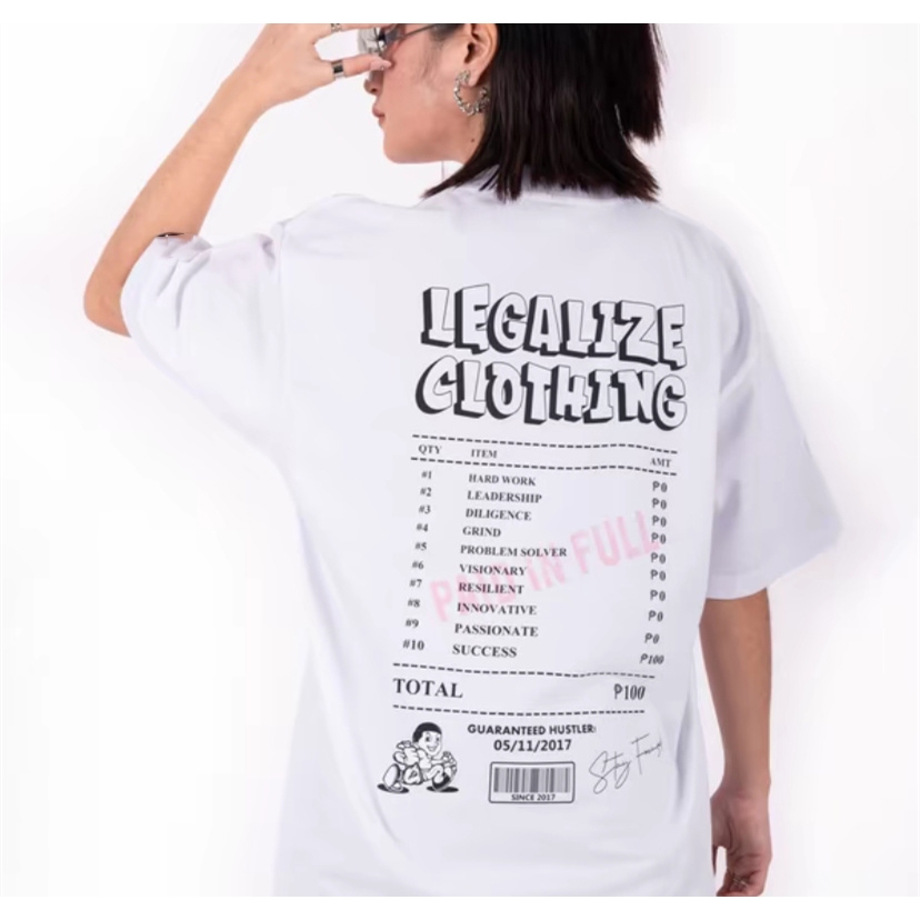 Replica Quality Shirt OFFICIAL LEGALIZE CLOTHING - RECEIPT DESIGN HUSTLE TSHIRT Womenswear Menswear