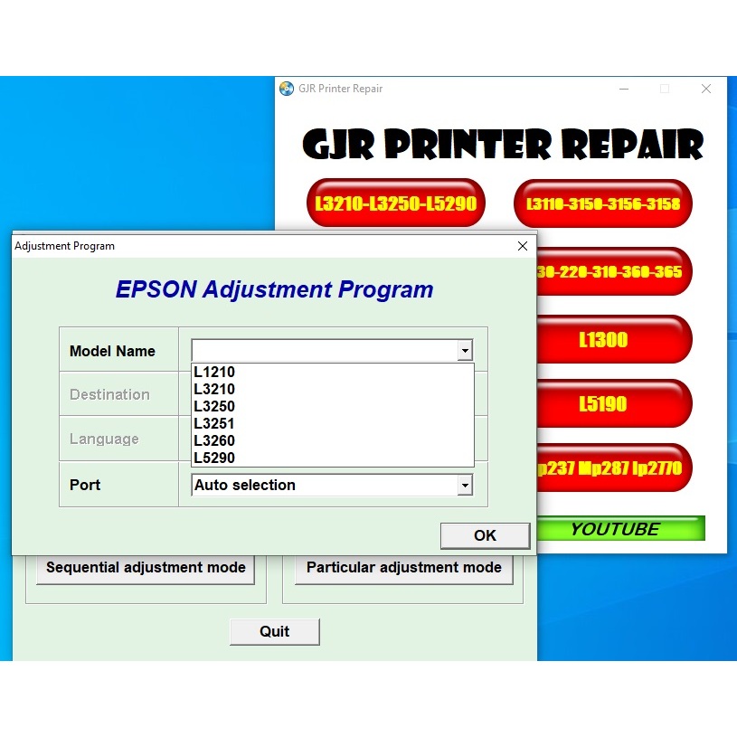 Resetter Tools Epson L3210 L3250 L5190 L5290 L3110 L3150 L3156 L3158 L1300 L1800 L805 L120 L121 L360