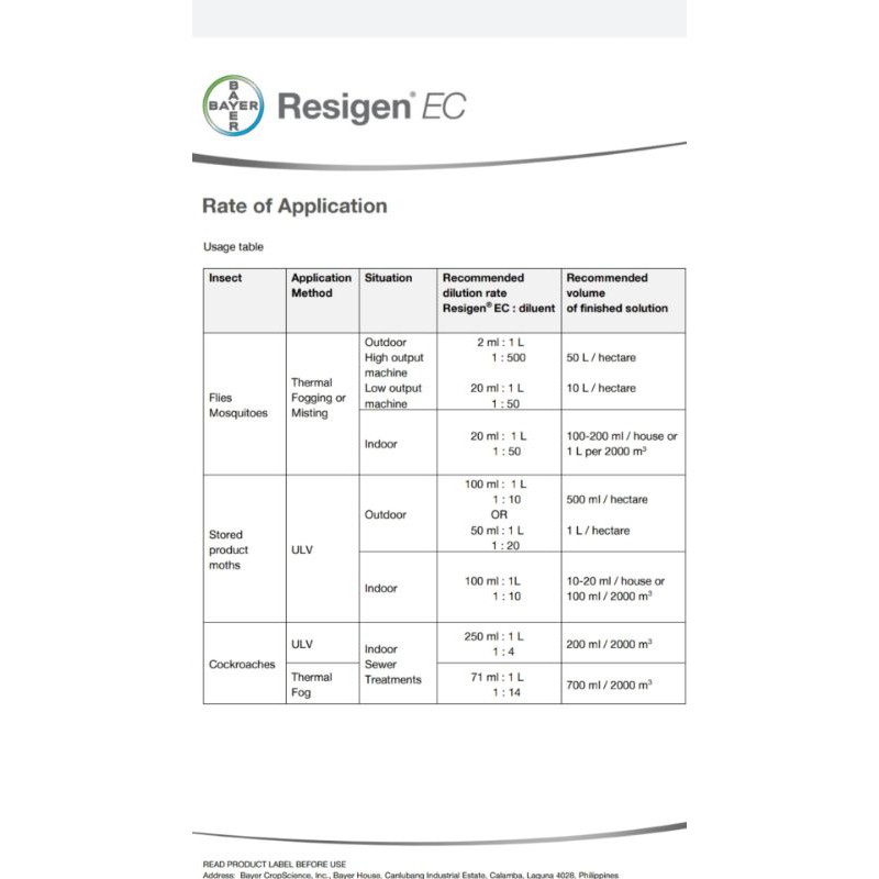 Resigen EC Bayer (S-bioallethrin, Permethrin, Piperonyl Butoxide) (1 Liter) NEW PACKAGING
