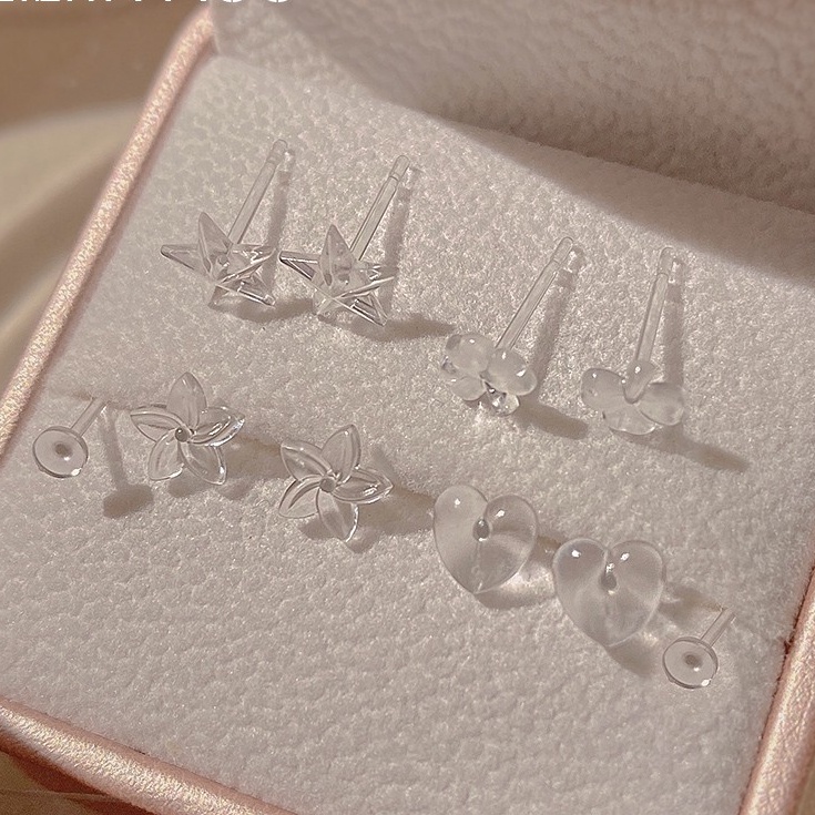 Resin Transparent Ear Studs New Invisible Earrings Earrings Plastic Ear Bar Anti-Blocking Needle