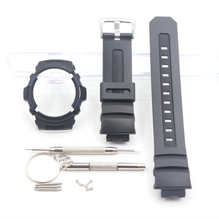 Resin Watchband with Bezel for AW-591 AW-590 AWG-M100 101 G-7700 Men Watch Band Case Sport Waterproof 16mm Replacement Bracelet Accessories