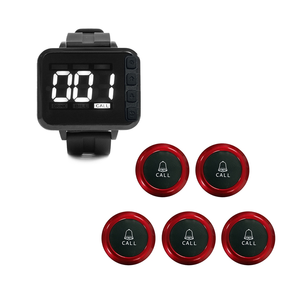 Restaurant Pager Wireless Waiter Calling System Watch Receiver with Buttons Used for Kitchen Factory Restaurant Clinic Nurses Waiter Restaurant Service Call