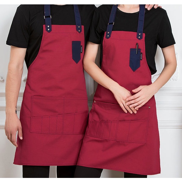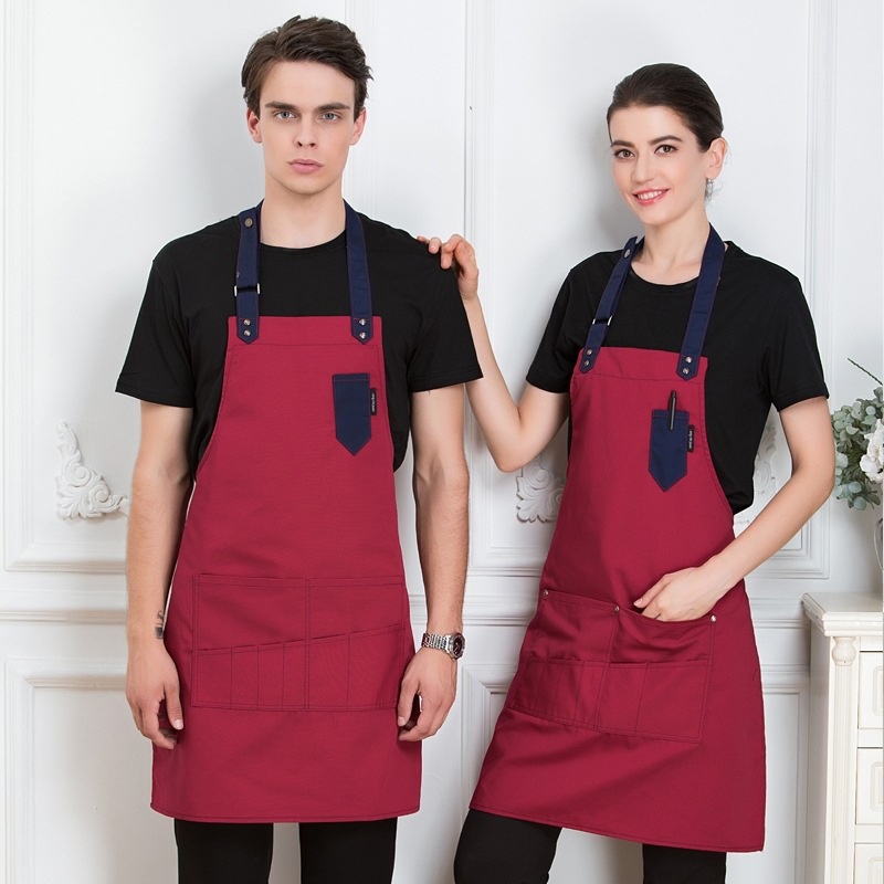 Restaurant hanging neck canvas apron color matching household anti-fouling waiter apron