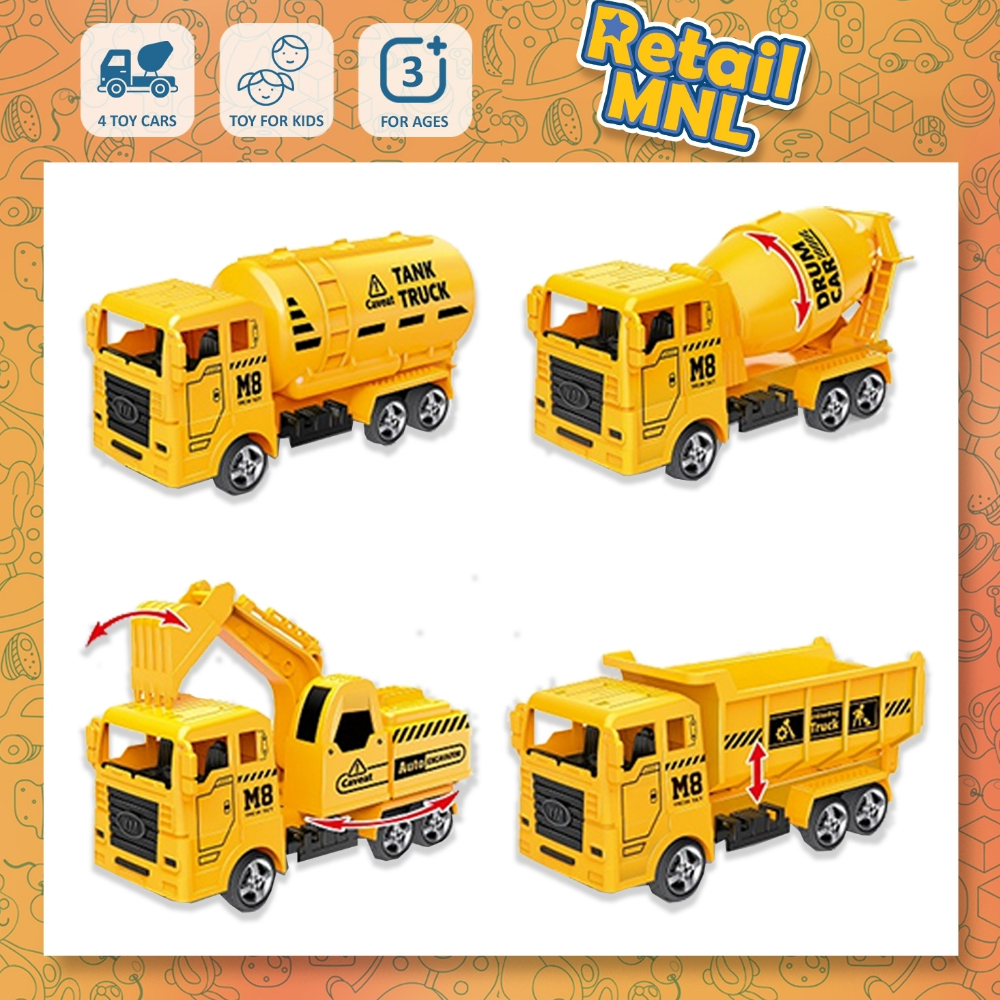 Retailmnl 4pc Yellow Truck Complete Set Collection Kids Toys For Boys Kids Toys For Girls