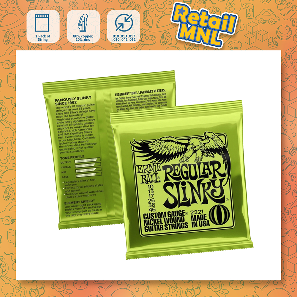 Retailmnl Ernie Ball Regular Slinky Nickel Wound Electric Guitar Strings - .010-.046