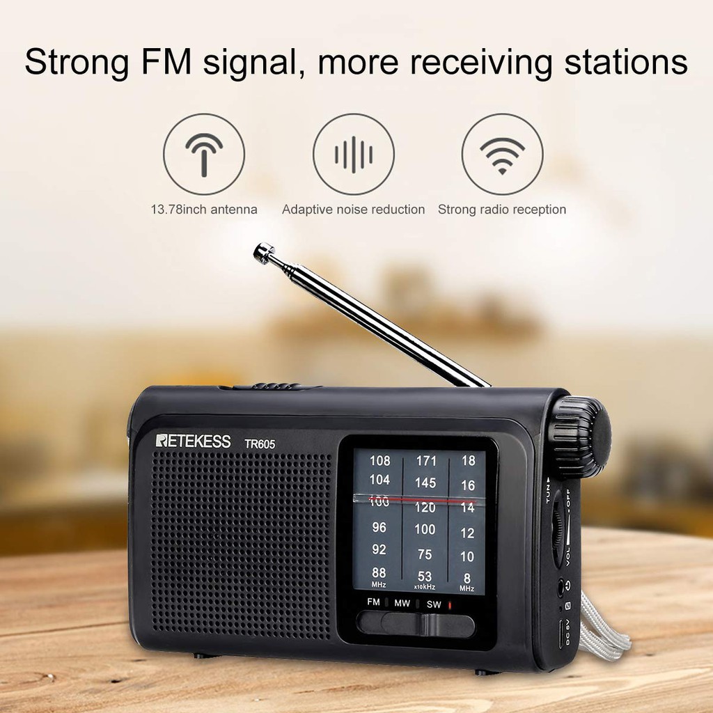 RETEKESS TR605 Portable Radios with Best Reception AM FM SW Battery Operated with LED Flashlight Rechargeable Battery