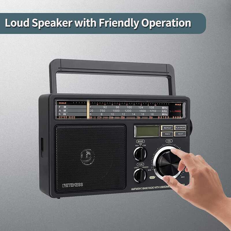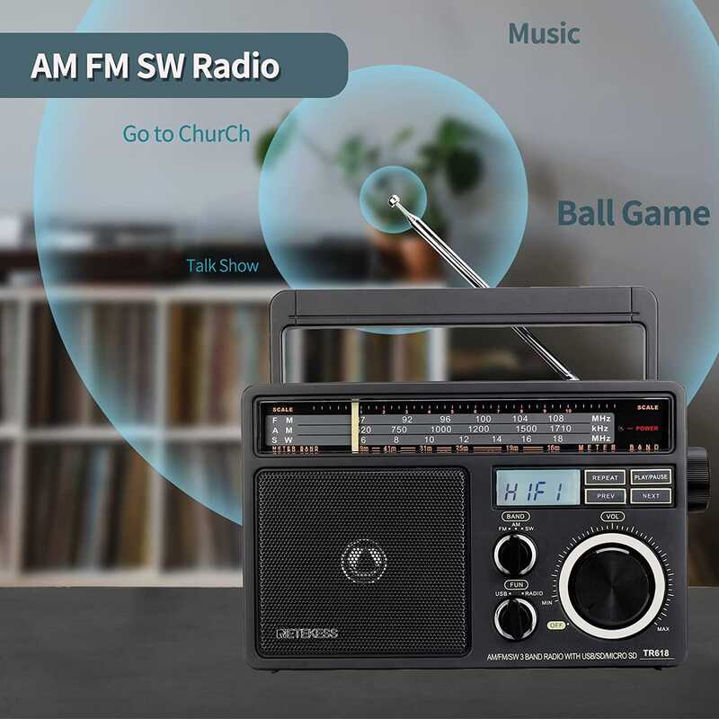 Retekess TR618 AM FM Radio Plug in Wall, 220V, Portable Shortwave Radio, Radio with Best Reception,
