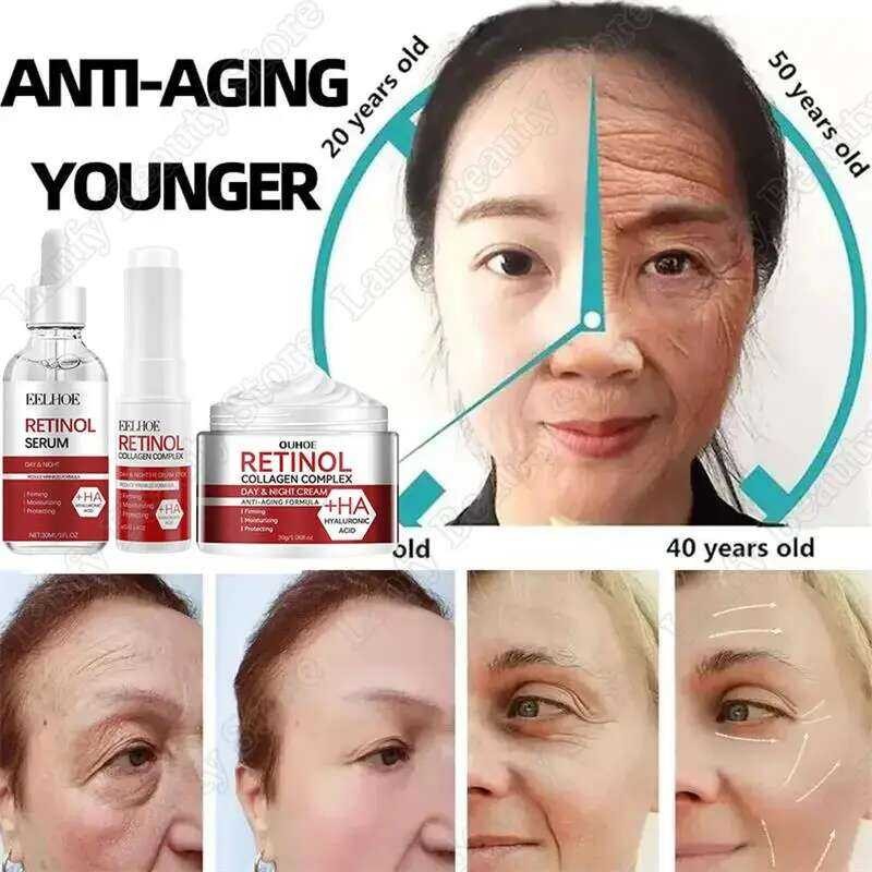 Retinol Wrinkle Remover Face Set Instant Firming Lifting Anti-Aging Serum Fade Fine Lines Whiteni