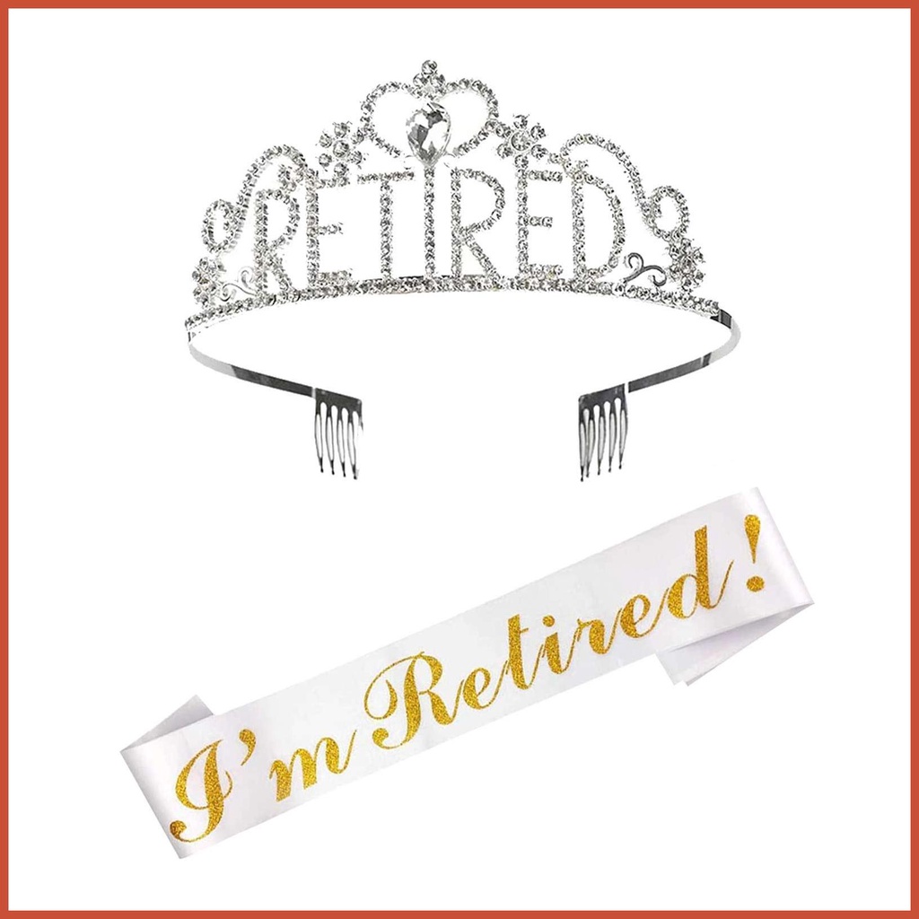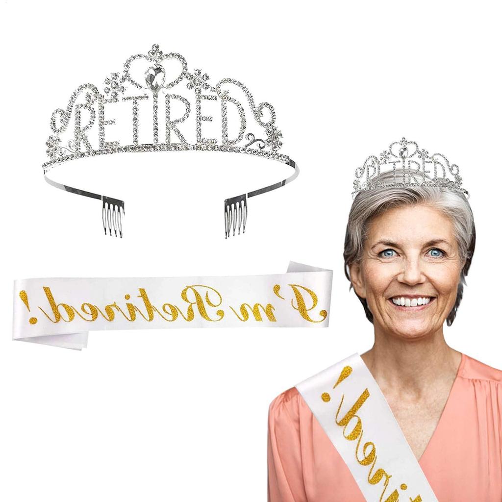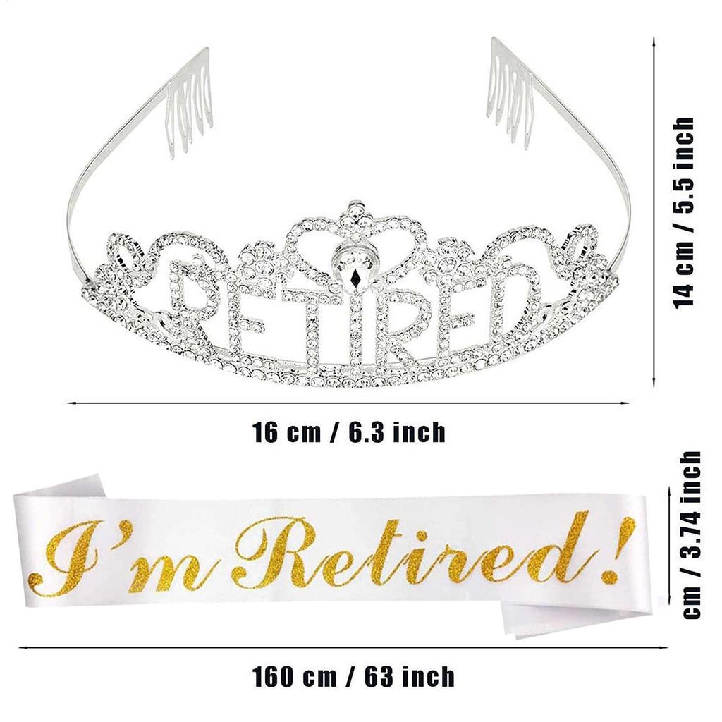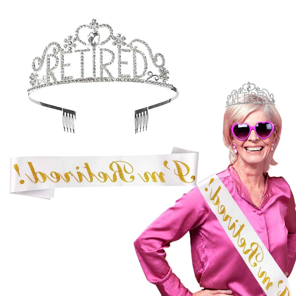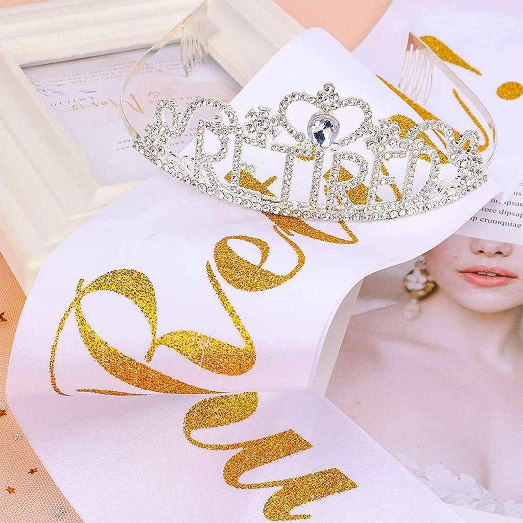 Retirement Tiara and Sash Set Glitter Rhinestone Tiara Decorations Party Supplies Exquisite Happy Retirement cingph