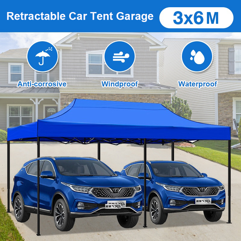 Retractable Car Tent 3x4.5/3x6 Meters Heavy Duty Outdoor Waterproof Foldable Tent with Frame