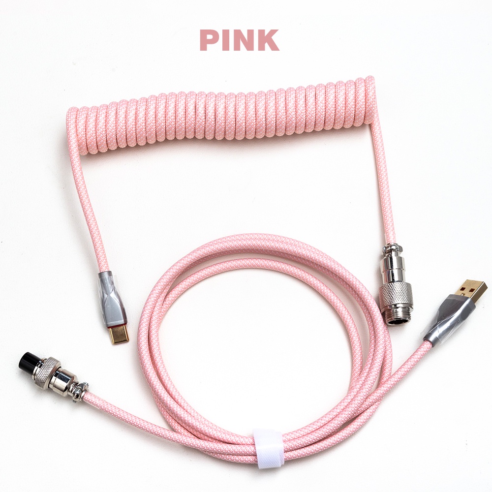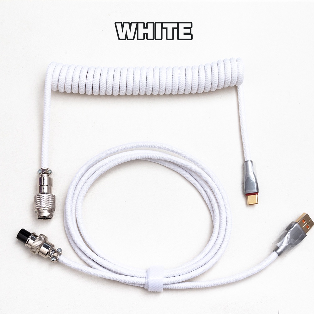 Retractable Coiled Avaitor Cable for Mechanical Keyboard Type-C + USB Extension cable Mmetal Plug