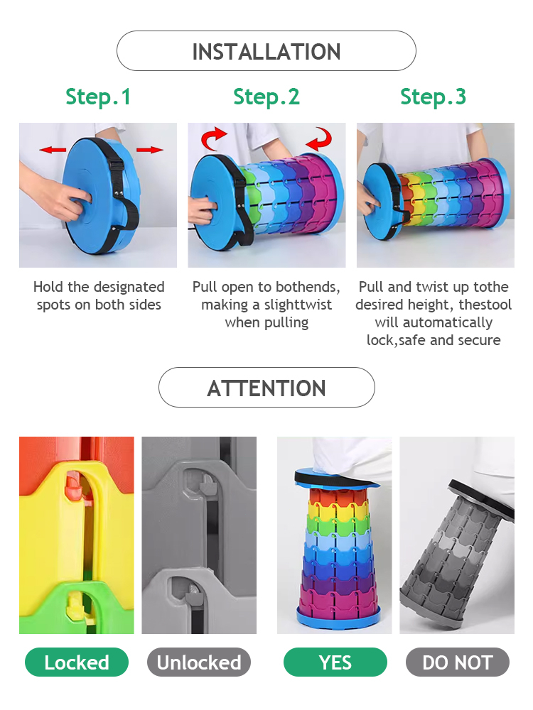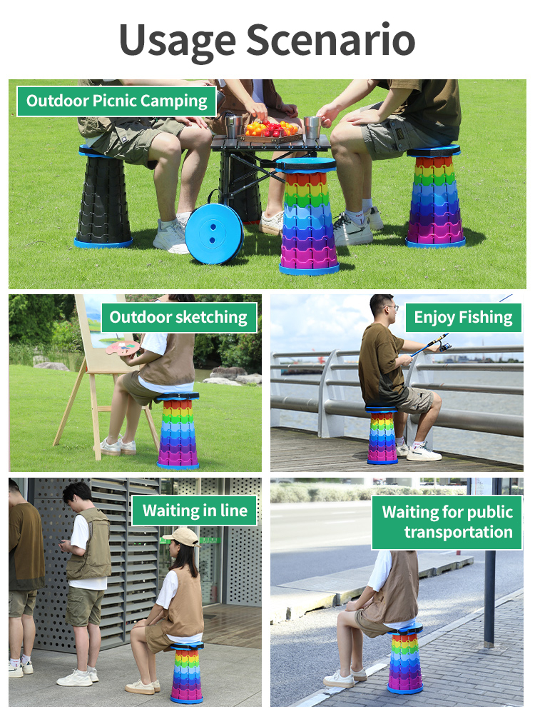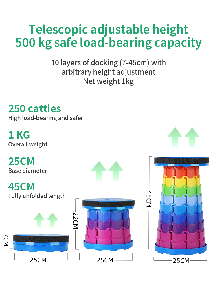 Retractable Folding Stool Adjustable Outdoor Play Queue Waiting Household Plastic Telescopic Stool