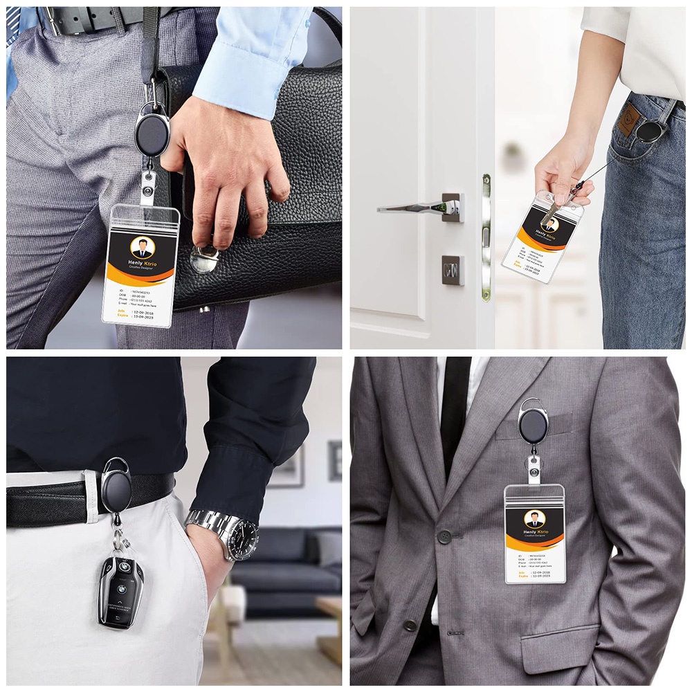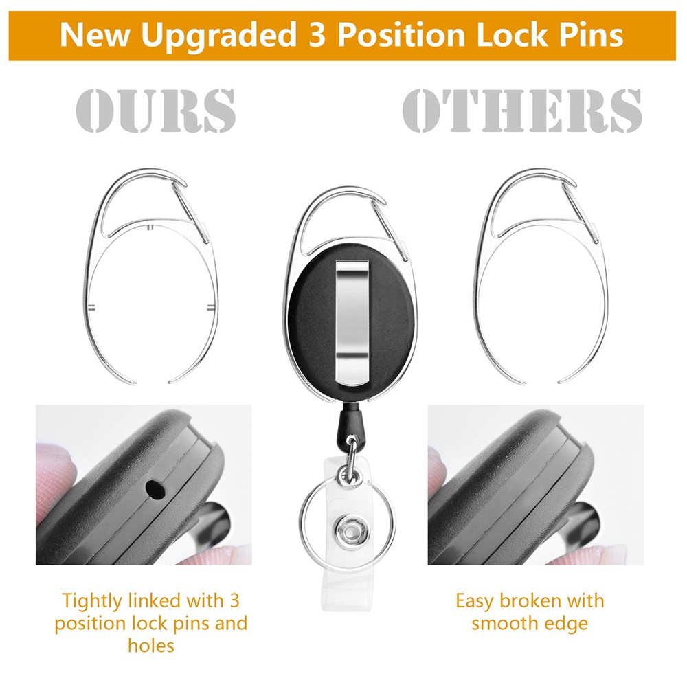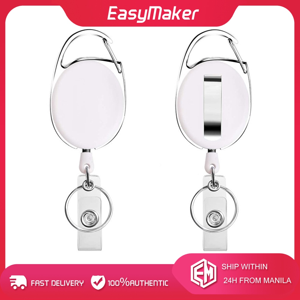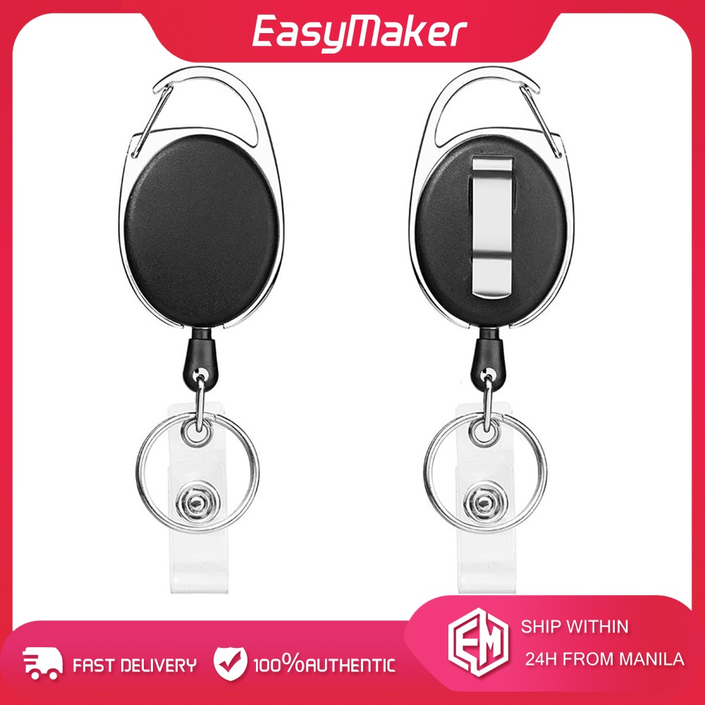 Retractable ID Holder Clip Lanyard Telescopic Burglar Key Chain Metal ID Badge Holder with Keyring