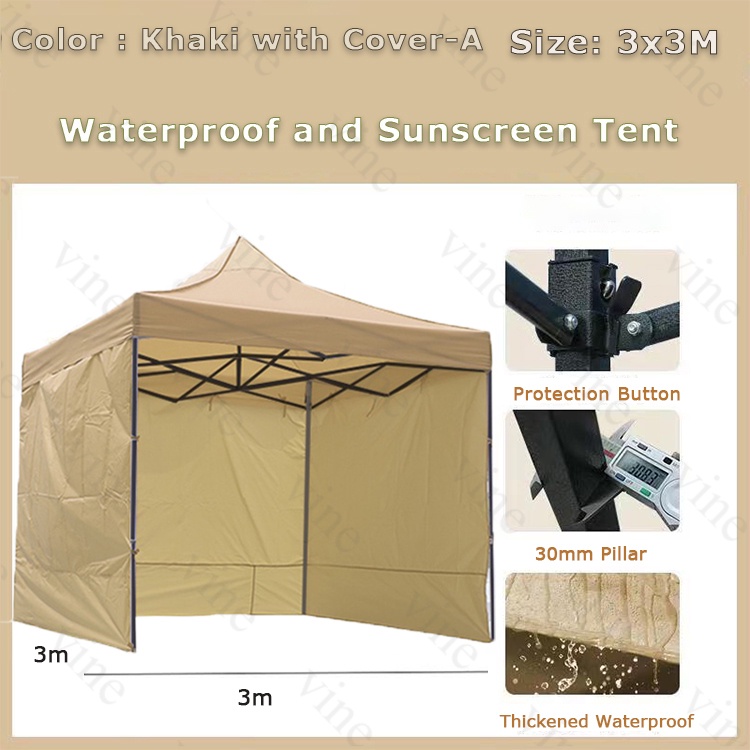 Retractable Tent Heavy Duty with Side Cover 3x3/3x4.5M Foldable Outdoor Waterproof Khaki Car Tent