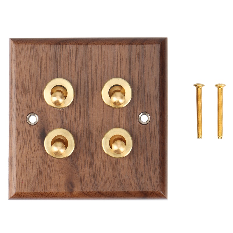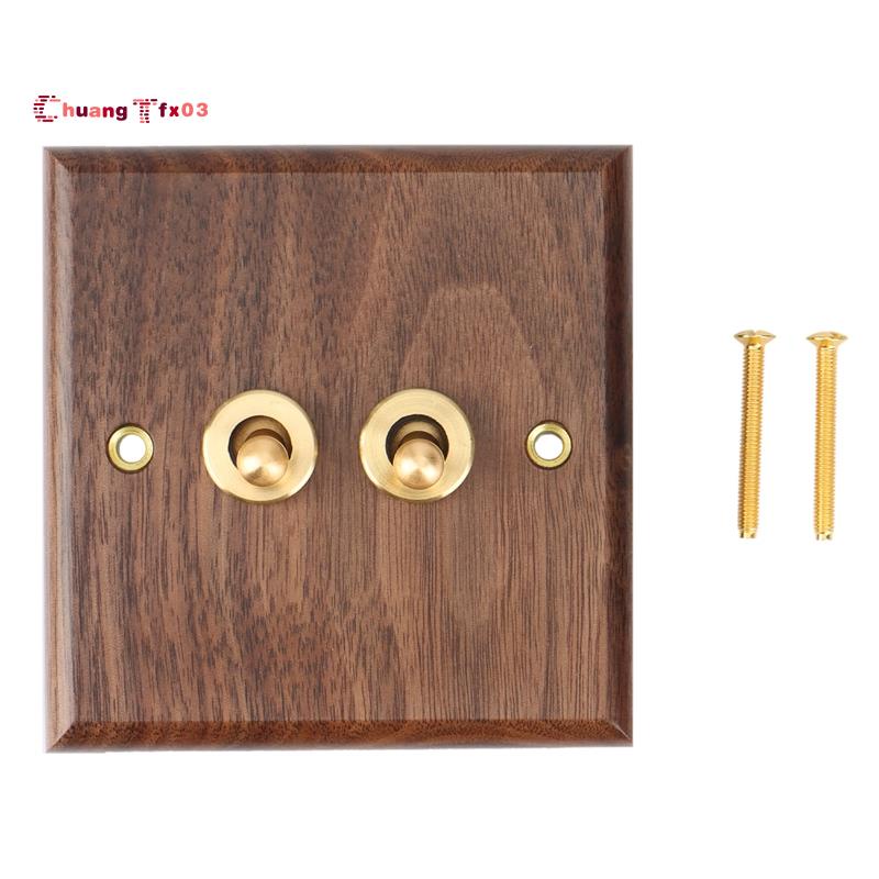 Retro American Industrial Style Light Switch Socket, Solid Wood Brass Toggle Switch Plate, Antique Home Stay Switch(1)