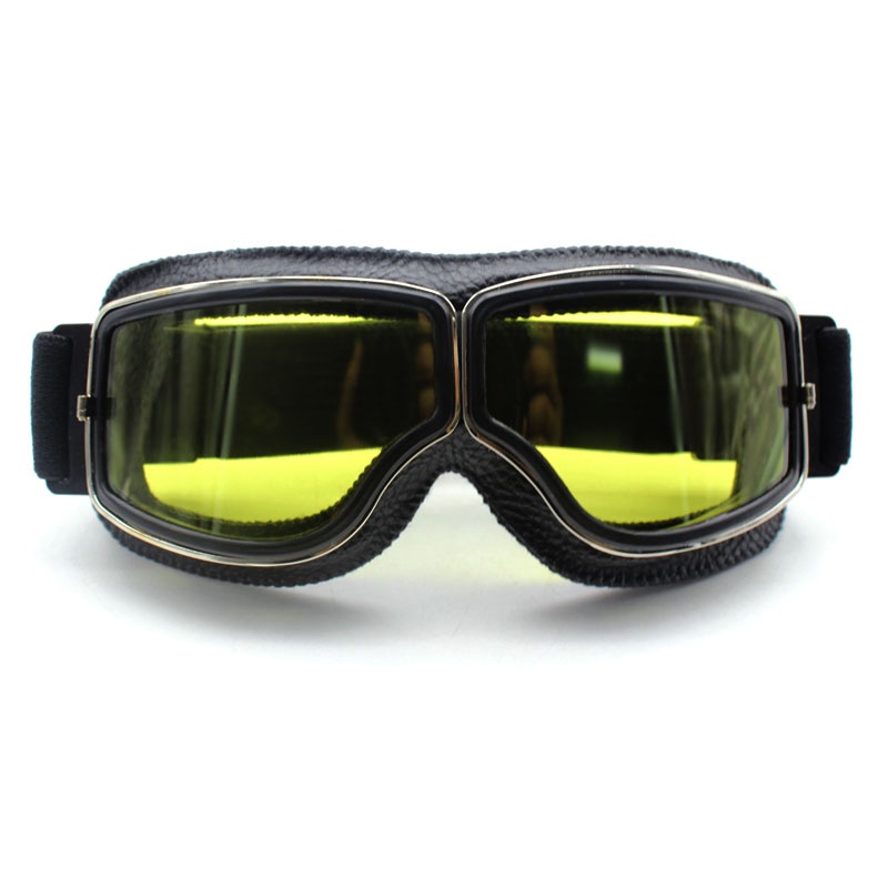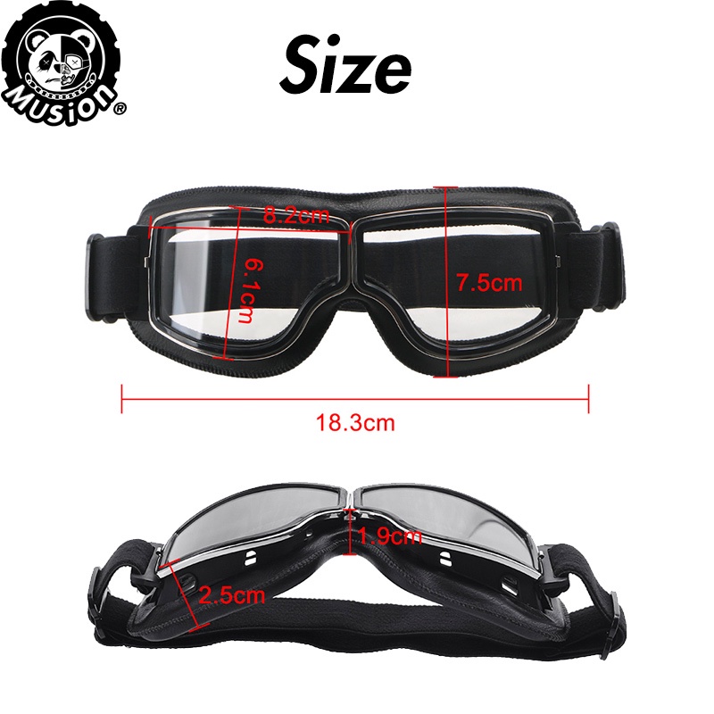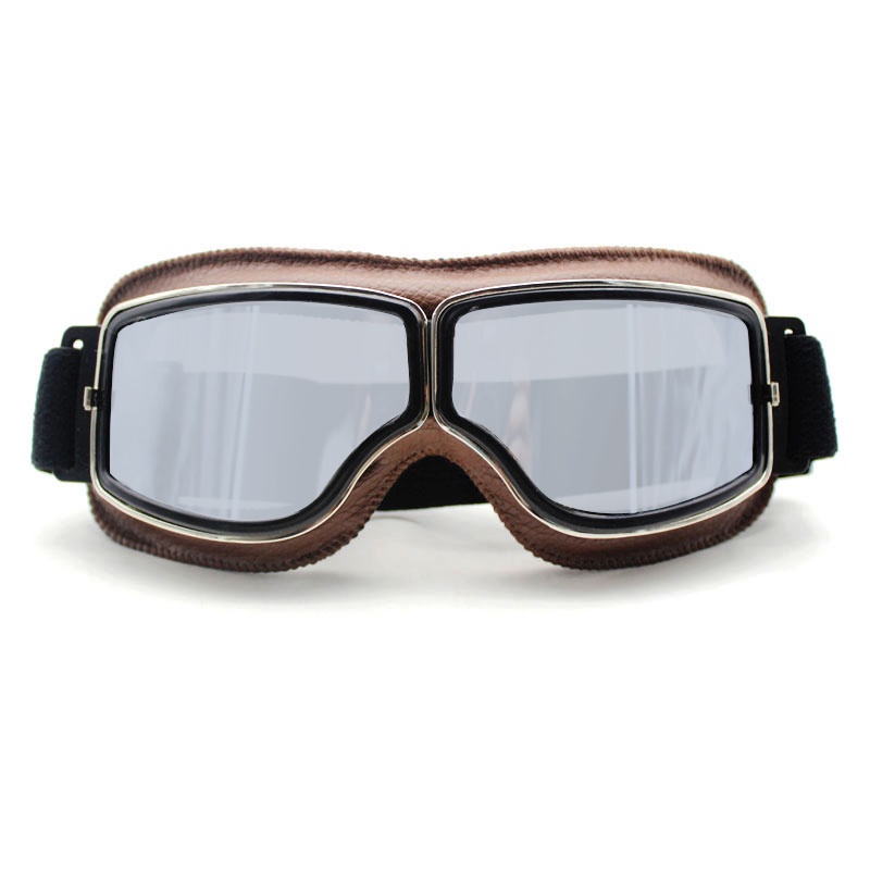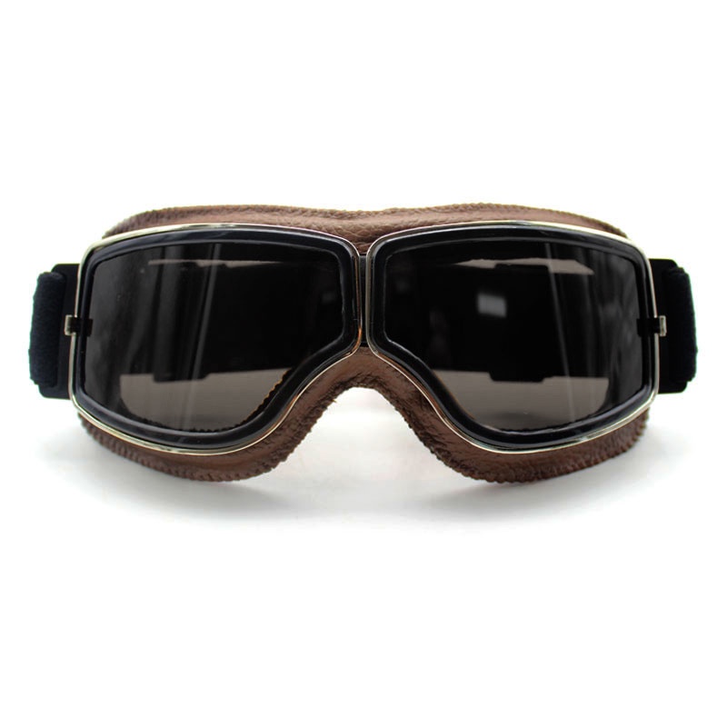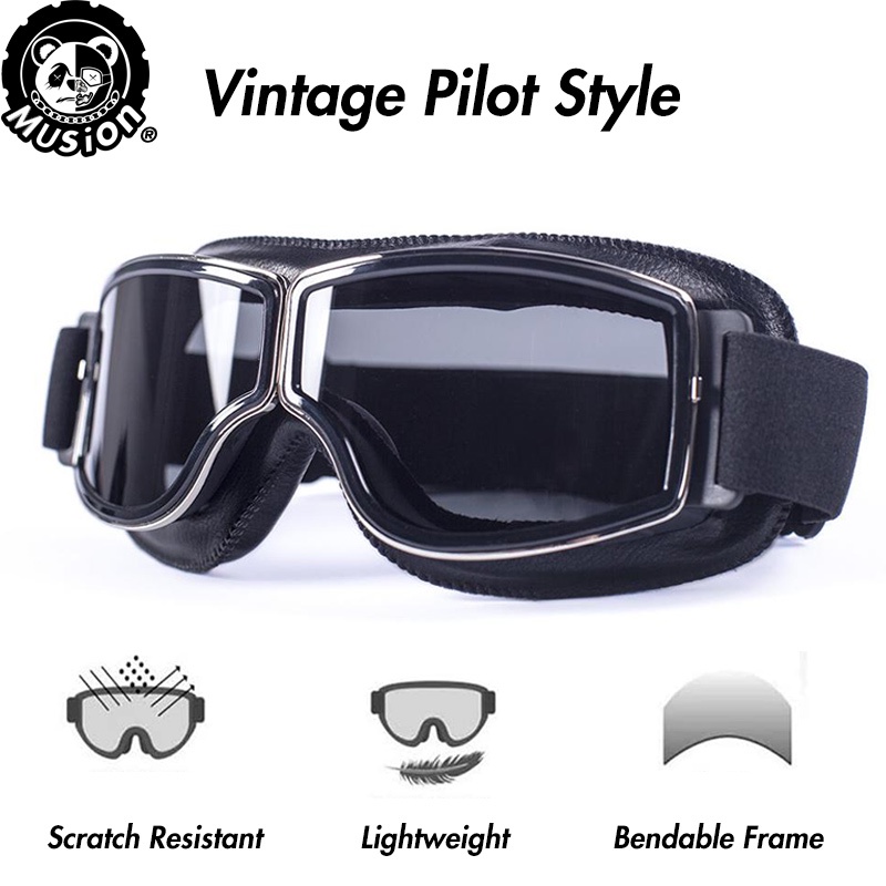 Retro Cafe Racer Goggle Motorcycle Goggles Vintage Pilot Leather Riding Glasses Scooter ATV Off Road Anti Scratch Dust Proof Eyewear for Men Women Adult