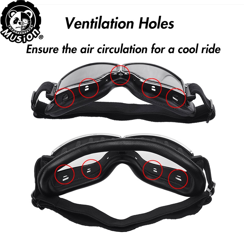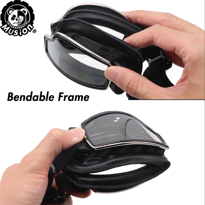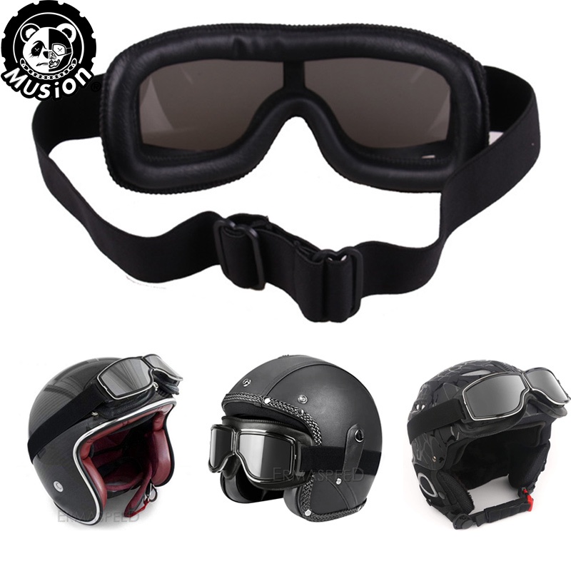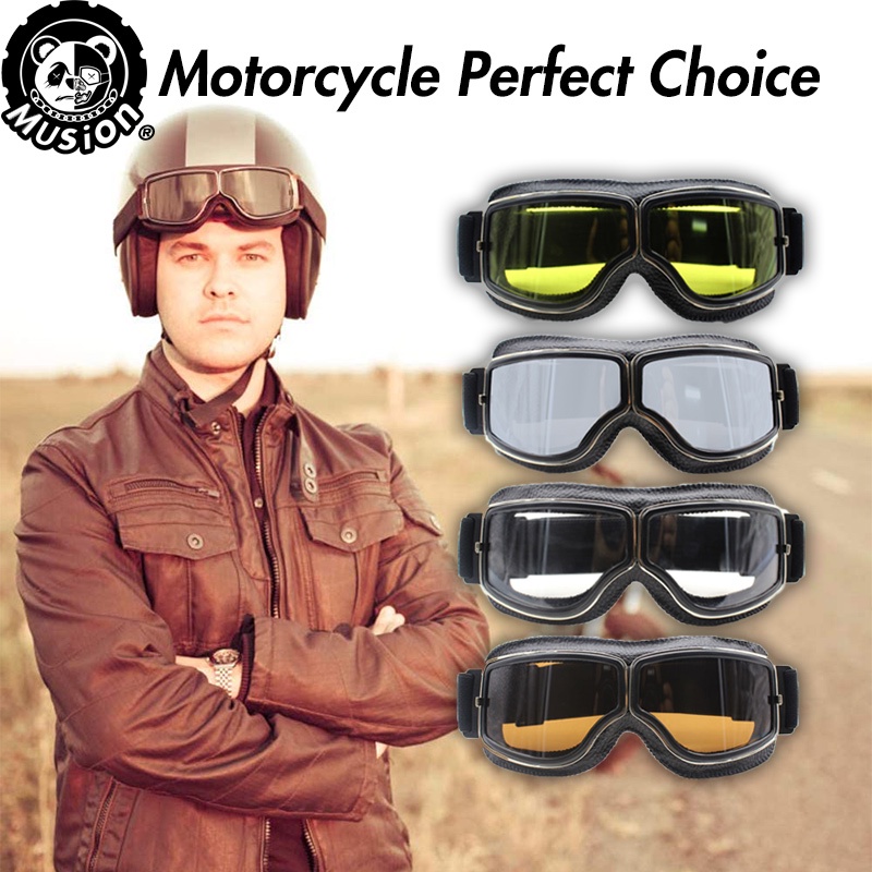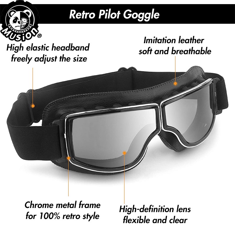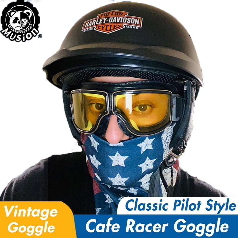 Retro Cafe Racer Goggle Motorcycle Goggles Vintage Pilot Leather Riding Glasses Scooter ATV Off Road Anti Scratch Dust Proof Eyewear for Men Women Adult