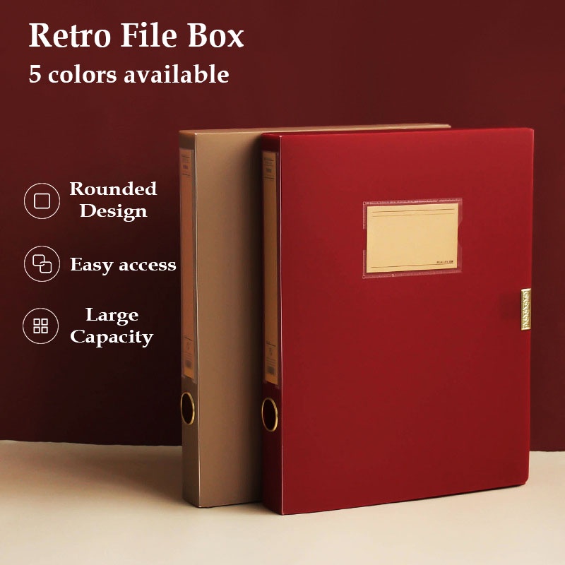 Retro File box multiple solid color 3.5cm & 5.5cm thickness A4 size Foldable file box